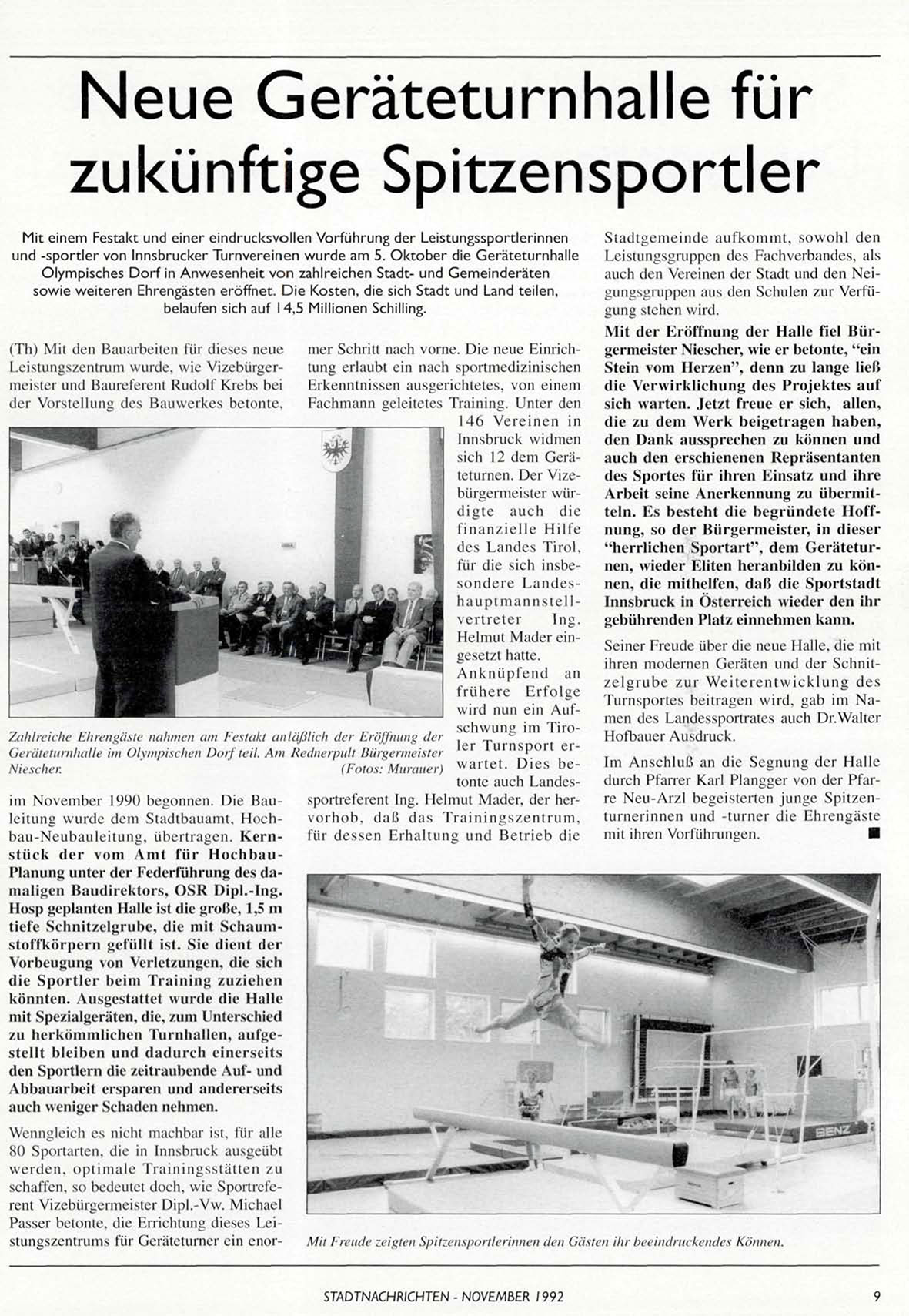 tonte auch Landessportreferent Ing. Helmut Mader, der herim November 1990 begonnen. Die Bauvorhob, daß das Trainingszentrum,