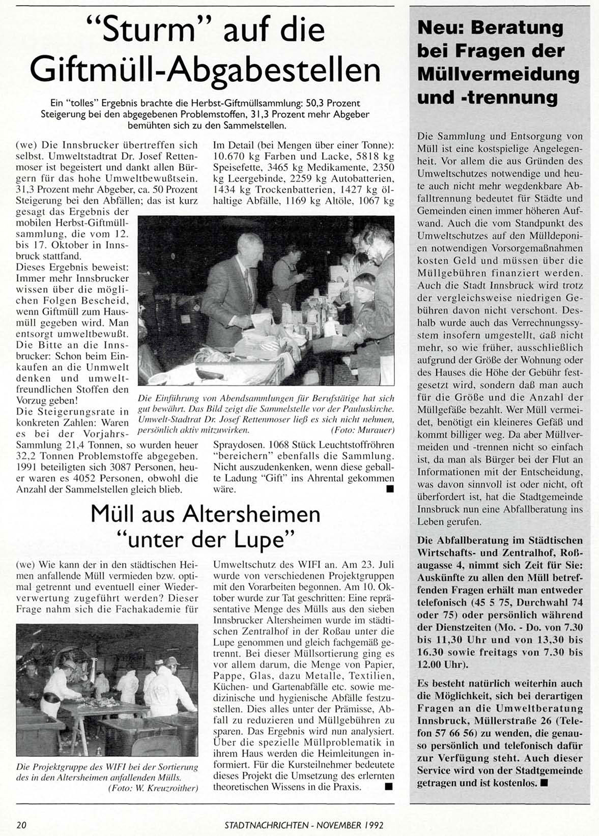 STADTNACHRICHTEN - NOVEMBER 1992