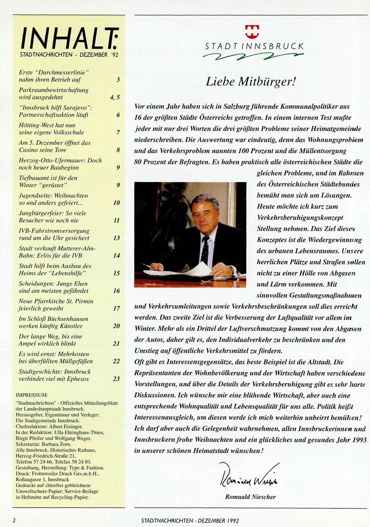 Innsbruckern frohe Weihnachten und ein glückliches und gesundes Jahr 1993