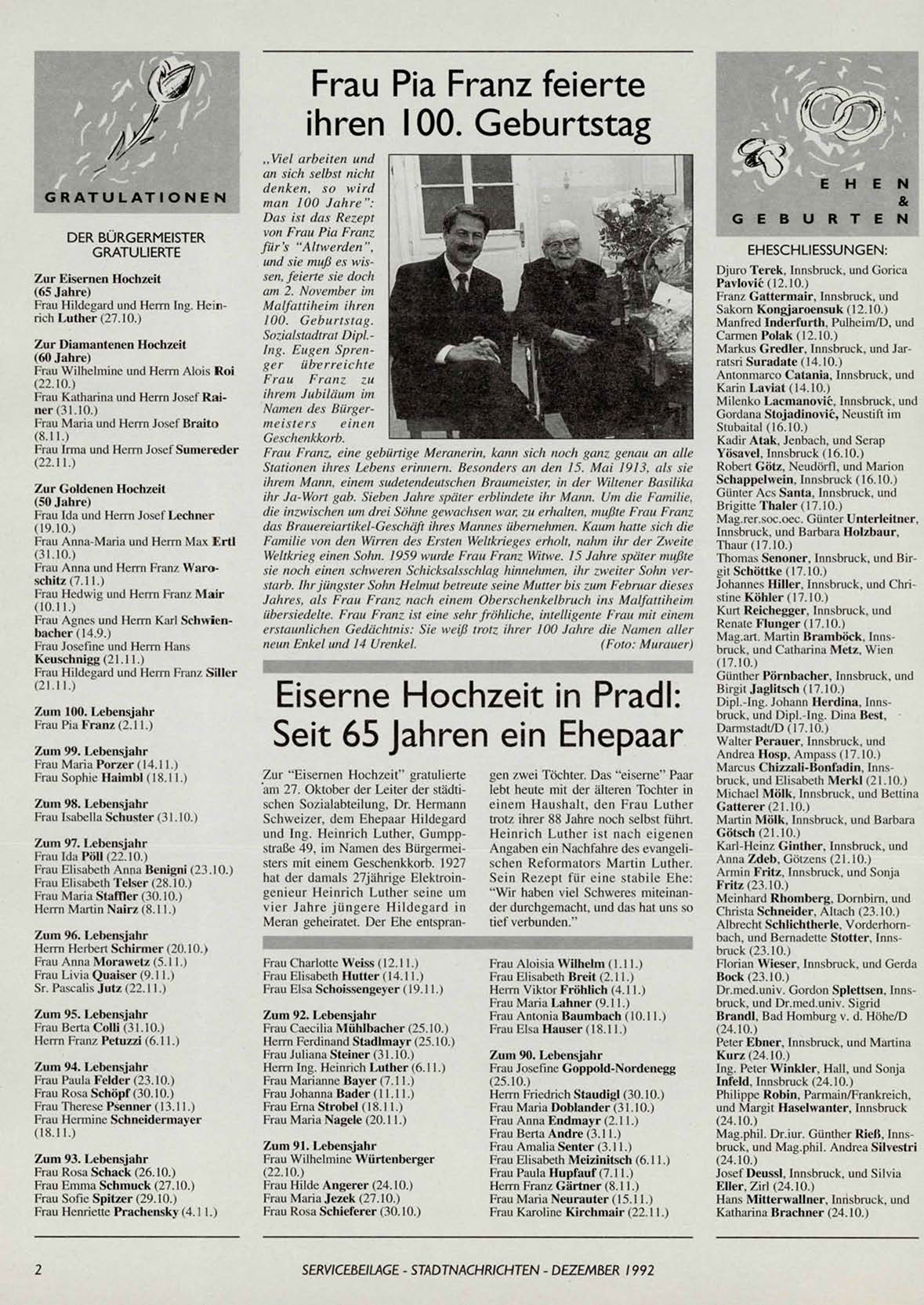 SERVICEBEILAGE - STADTNACHRICHTEN - DEZEMBER 1992