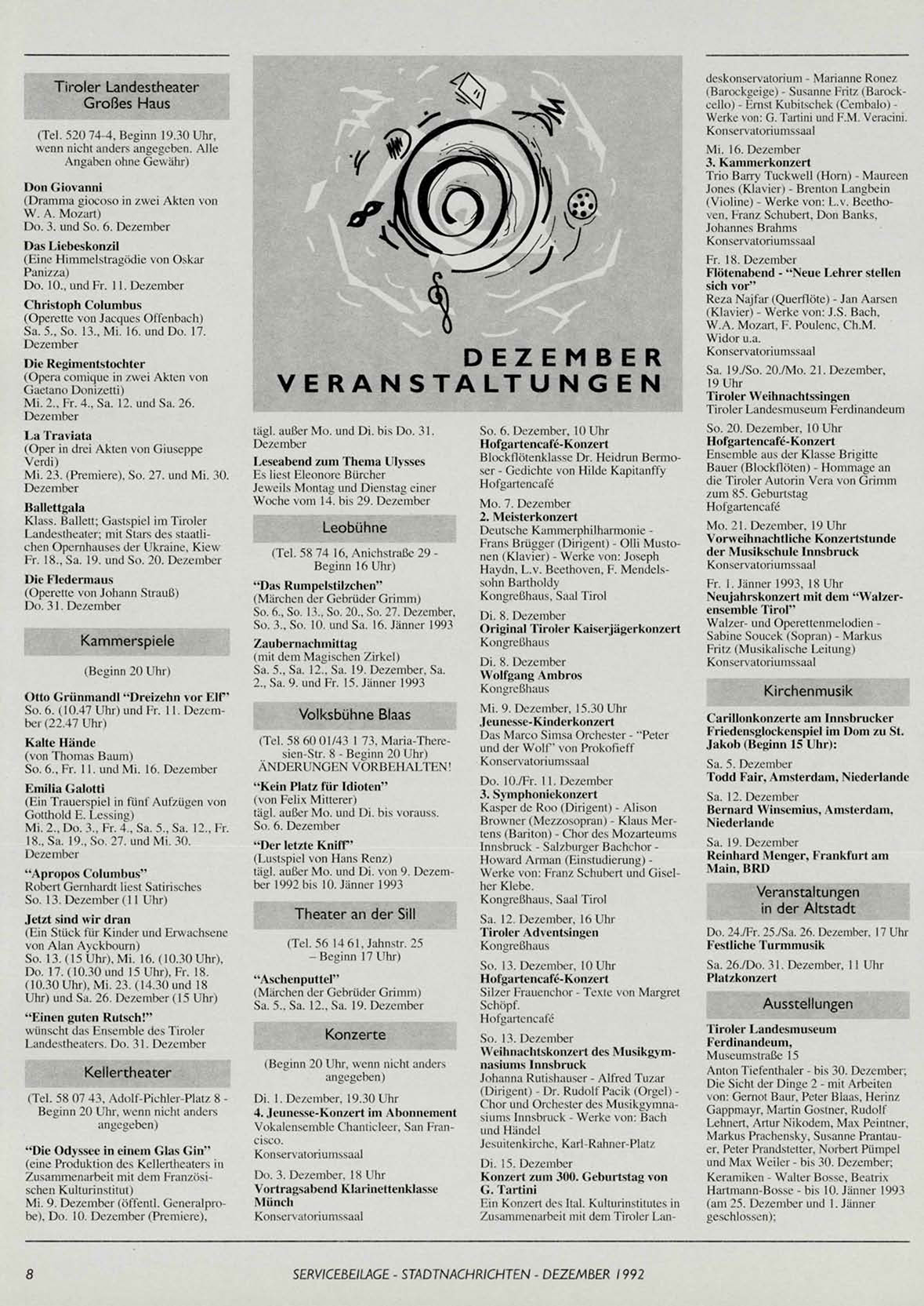 SERVICEBEILAGE - STADTNACHRICHTEN - DEZEMBER 1992