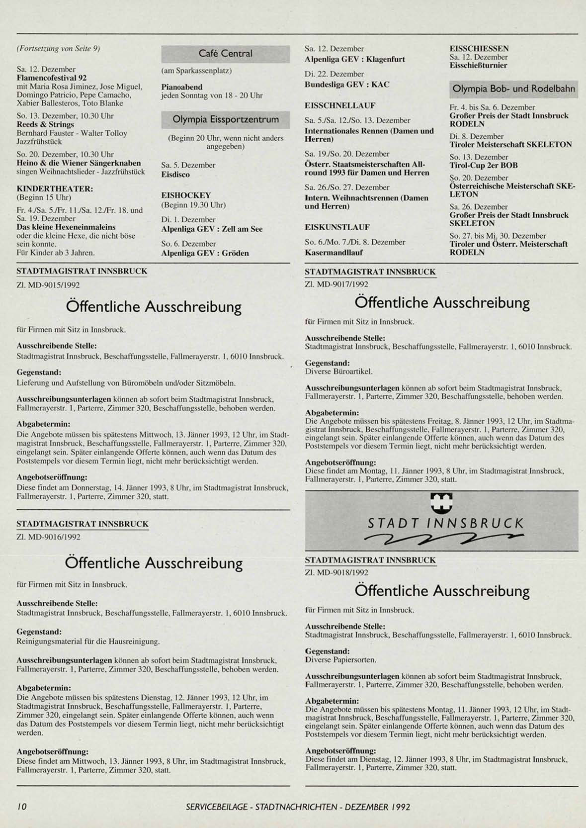 Diese findet am Donnerstag, 14. Jänner 1993, 8 Uhr, im Stadtmagistrat Innsbruck,
