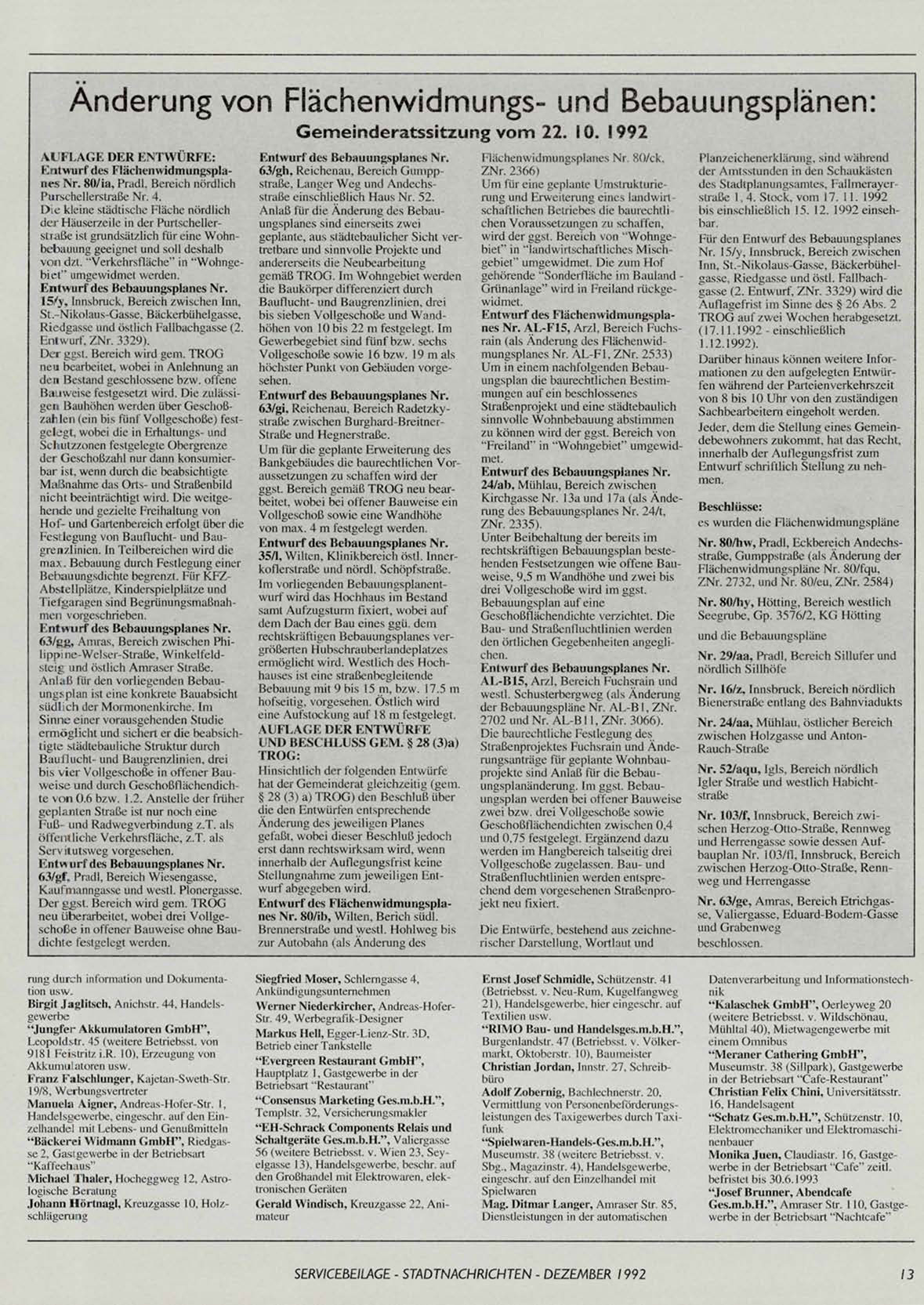 des Stadtplanungsamtes, Fallmerayerstraße 1,4. Stock, vom 17. ! 1. 1992