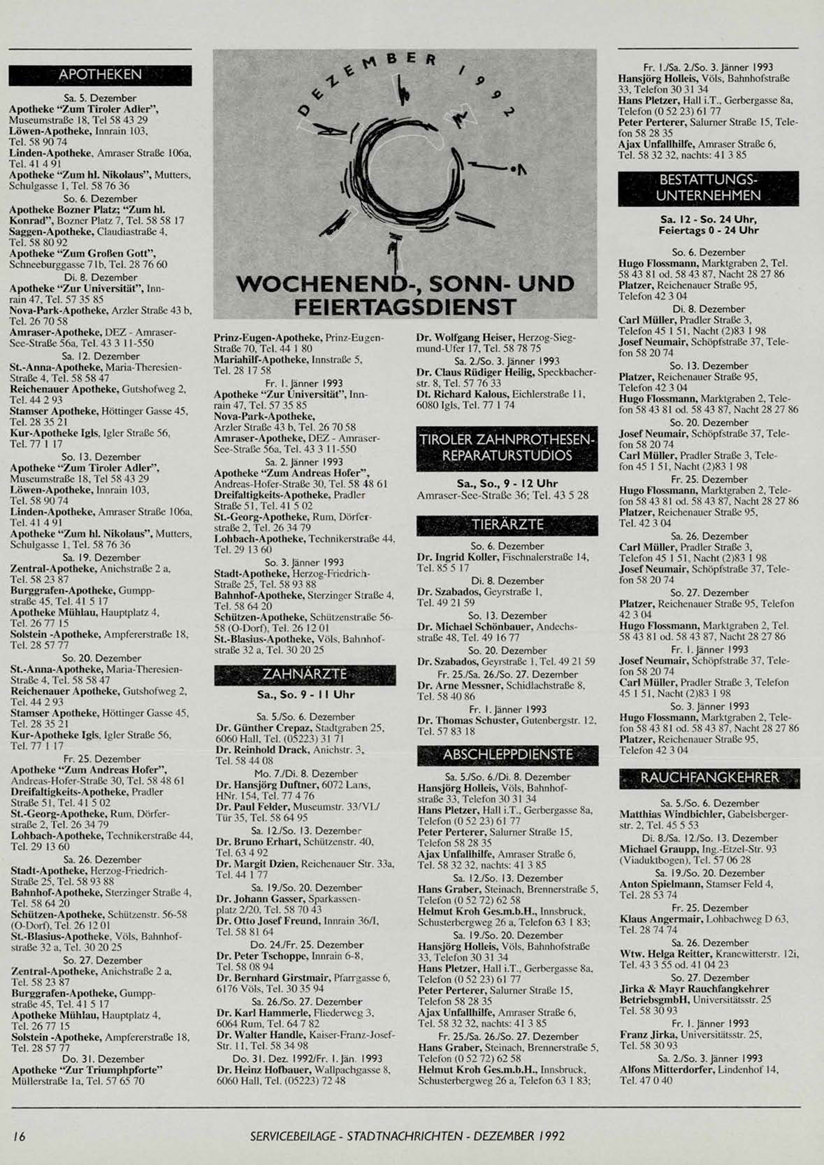 S£RV/C£ß£/LAG£ - STADTNACHRICHTEN - DEZEMBER 1992