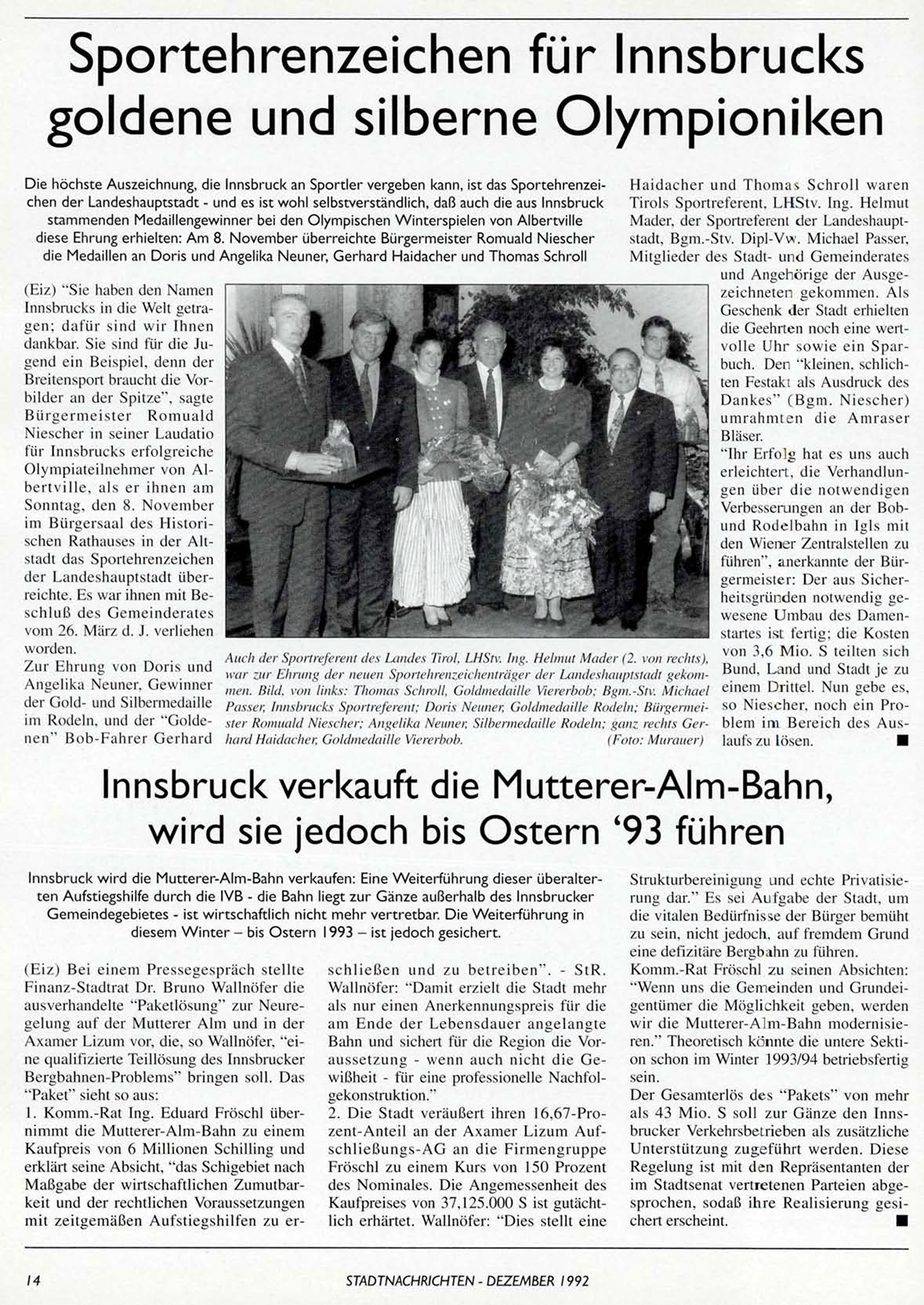 wir die Mutterer-Alm-Bahn modernisieren." Theoretisch könnte die untere Sektion schon im Winter 1993/94 betriebsfertig