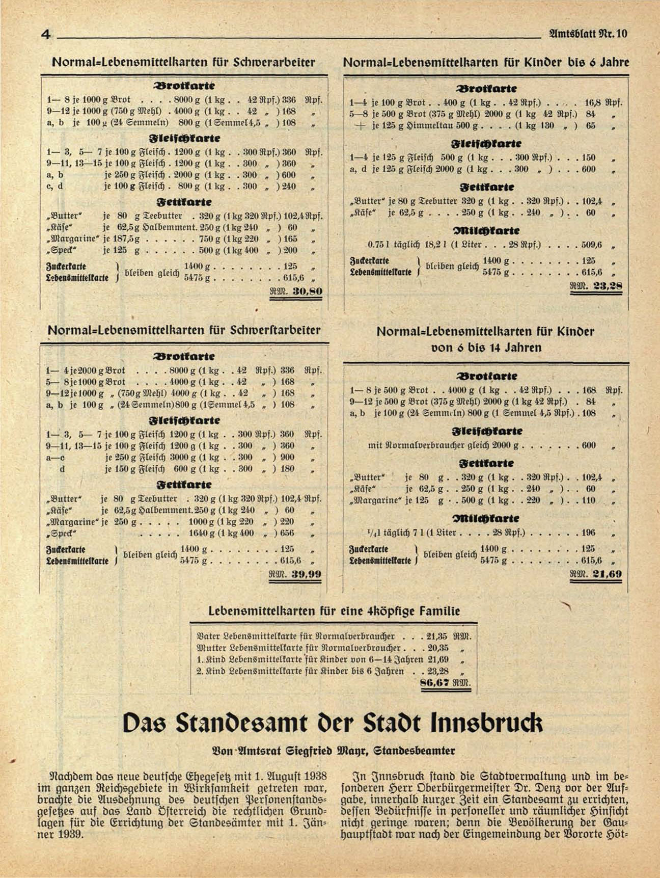 I n Innsbruck stand die Stadtverwaltung und im besonderen Herr Oberbürgermeister Dr. Denz vor der Aufgabe, innerhalb Kurger Zeit ein Standesamt gu errichten,