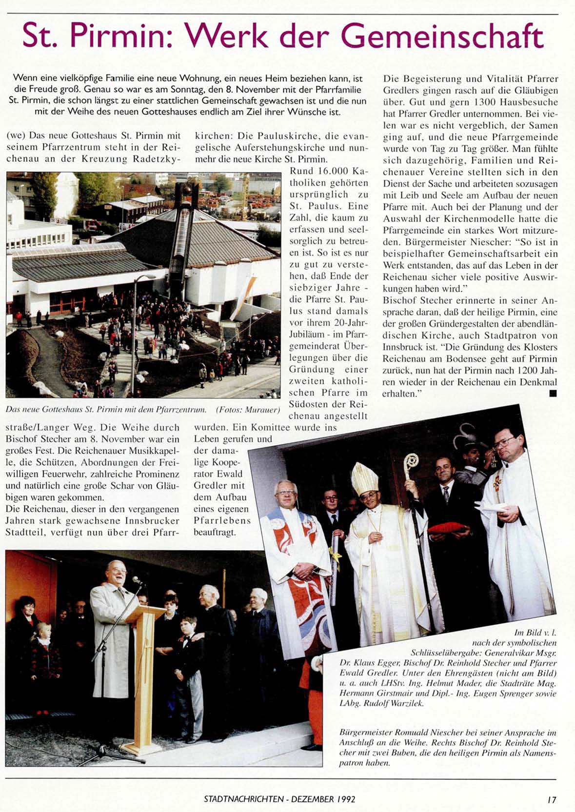 St. Pirmin, die schon längst zu einer stattlichen Gemeinschaft gewachsen ist und die nun