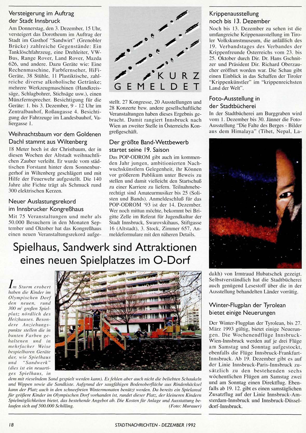STADTNACHRICHTEN - DEZEMBER 1992
