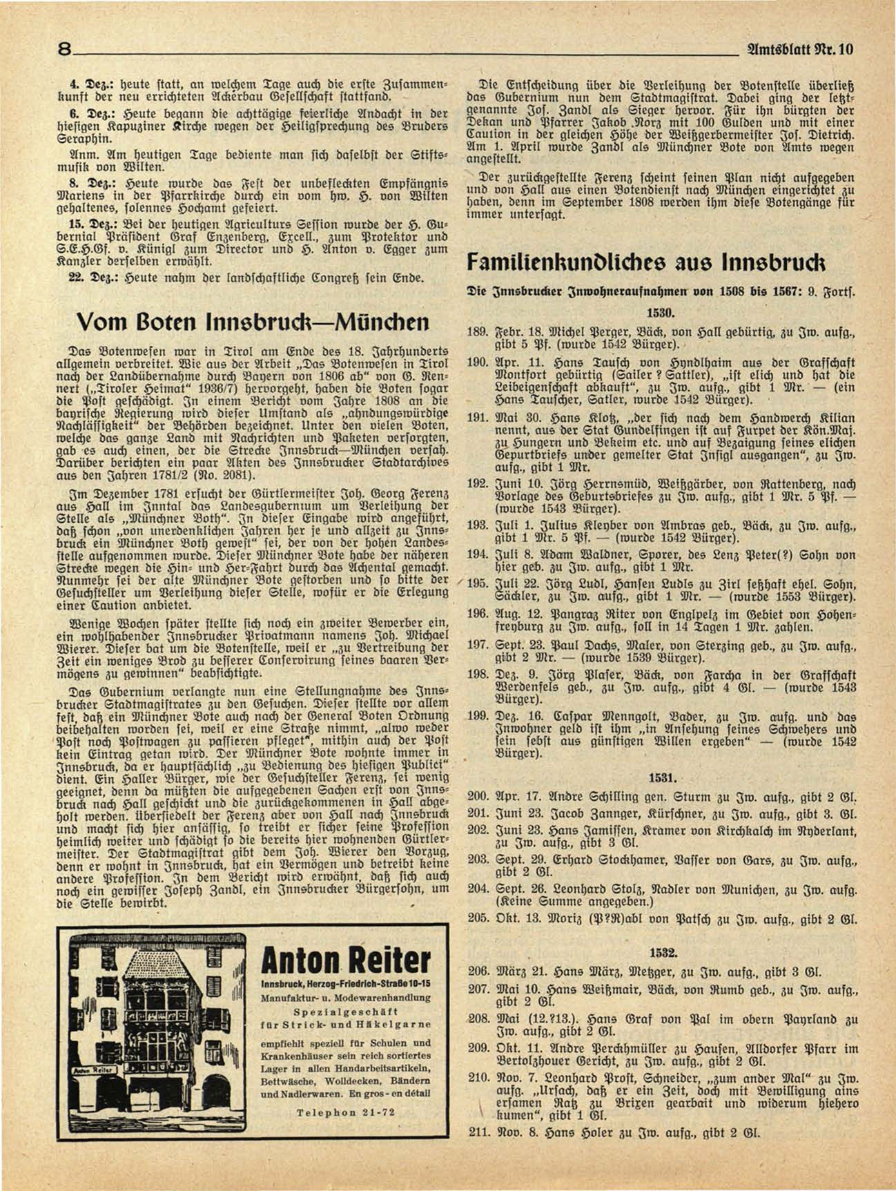 Darüber berichten ein paar Akten des Innsbrucker Stadtarchives