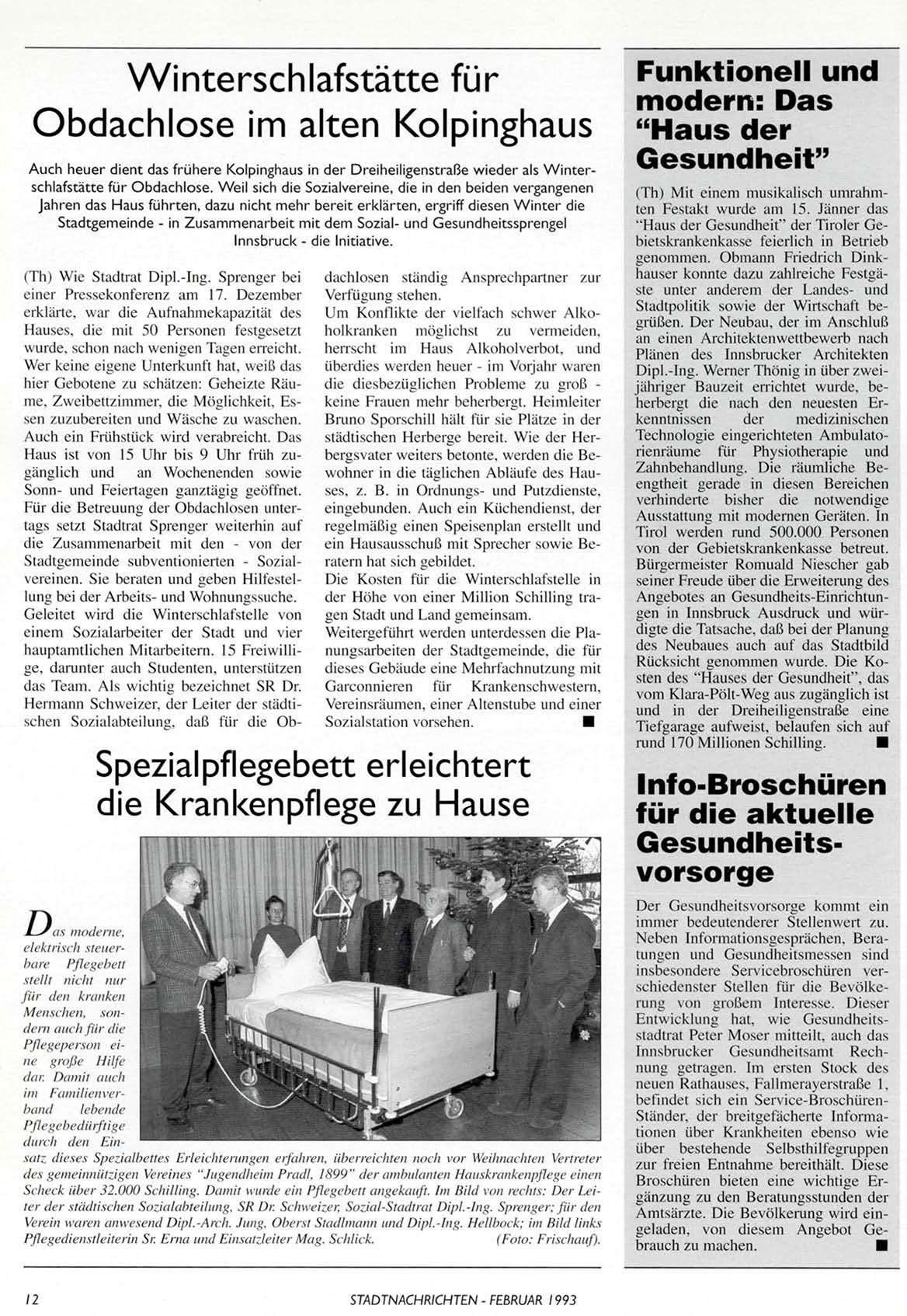 Angebotes an Gesundheits-Einrichtungen in Innsbruck Ausdruck und würdigte die Tatsache, daß bei der Planung