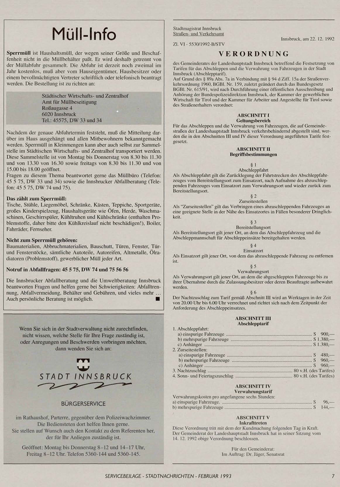 SERVICEBEILAGE - STADTNACHRICHTEN - FEBRUAR 1993