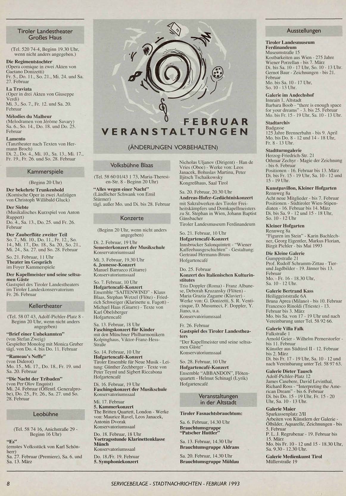 SERVICEBEILAGE - STADTNACHRICHTEN - FEBRUAR 1993