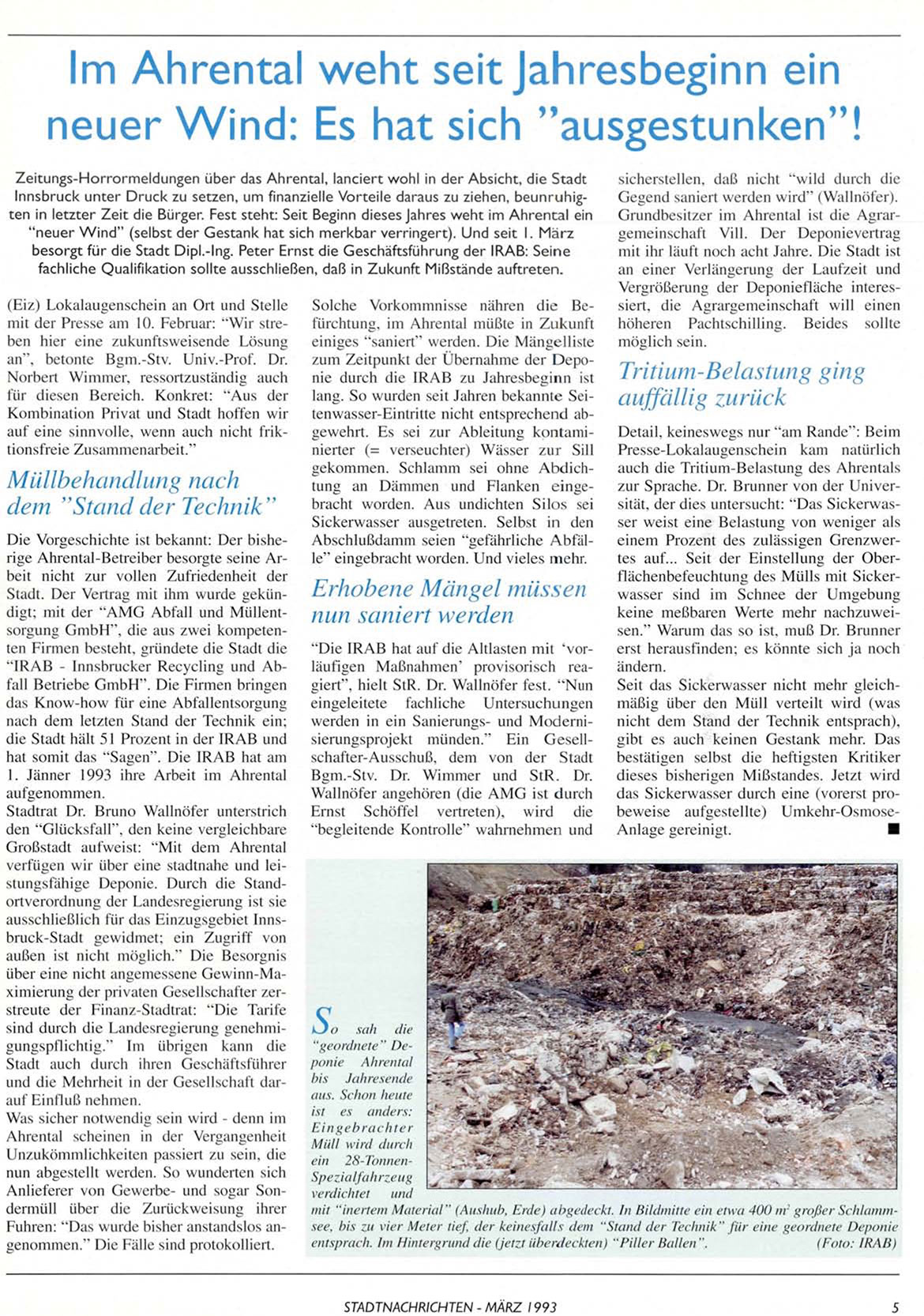 "Die IRAB hat auf die Altlasten mit "vorläufigen Maßnahmen" provisorisch reagiert", hielt StR. Dr. Wallnöfer fest. "Nun