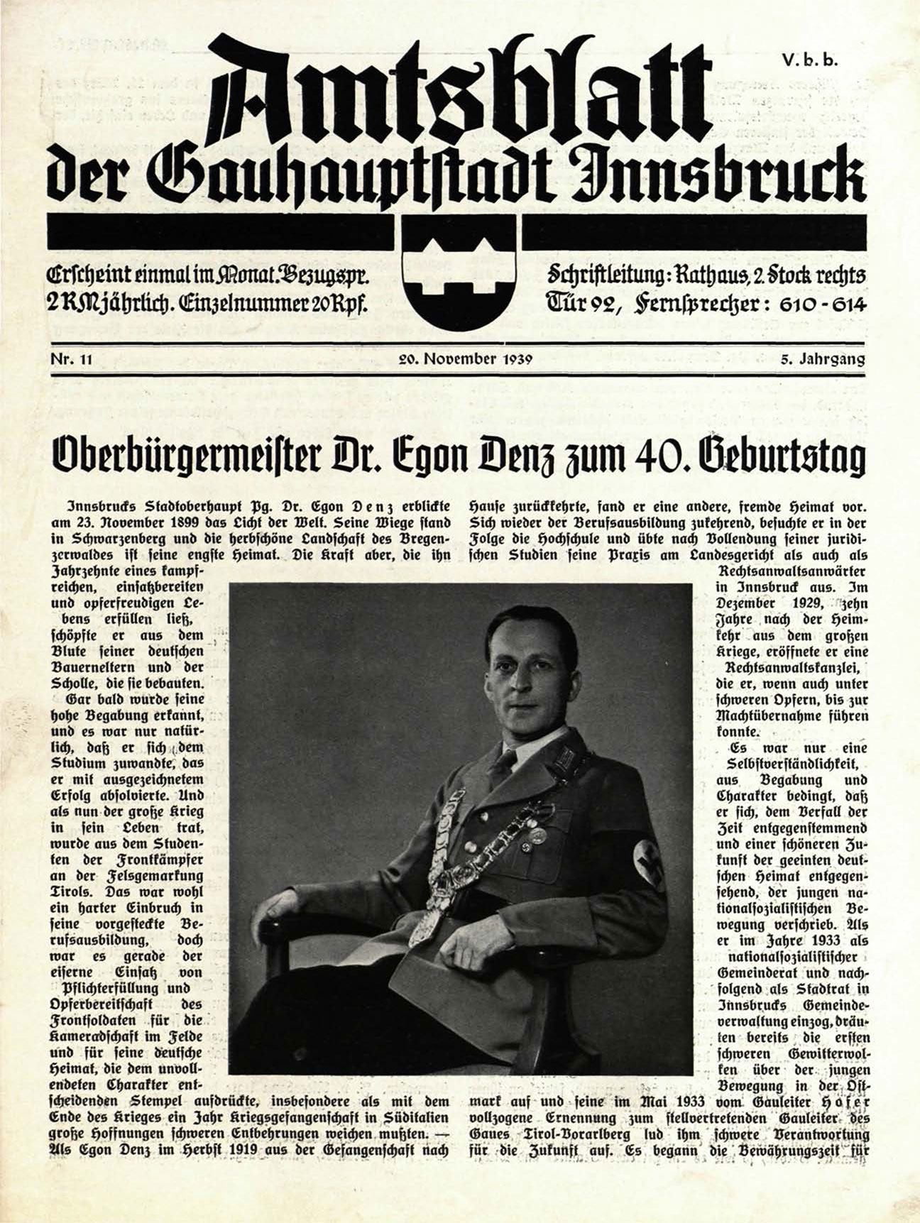 Innsbrucks Stadtoberhaupt Pg. Dr. Egon D e n z erblickte