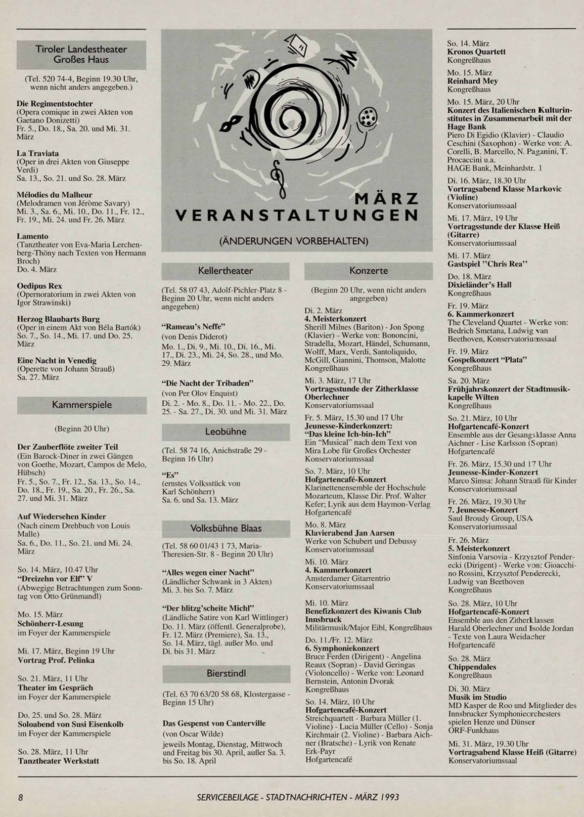 SERVICEBEILAGE - STADTNACHRICHTEN - MÄRZ 1993