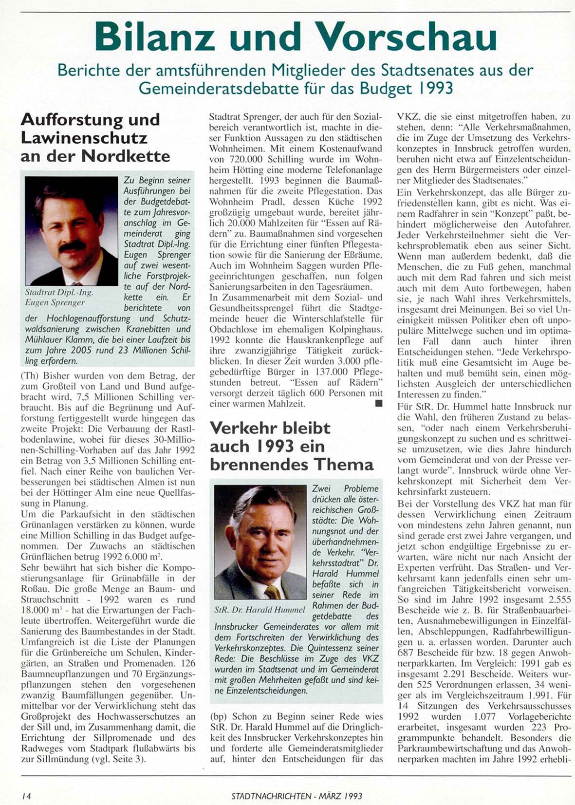vom Gemeinderat und von der Presse verlangt wurde". Innsbruck würde ohne Verkehrskonzept mit Sicherheit dem Verkehrsinfarkt zusteuern.