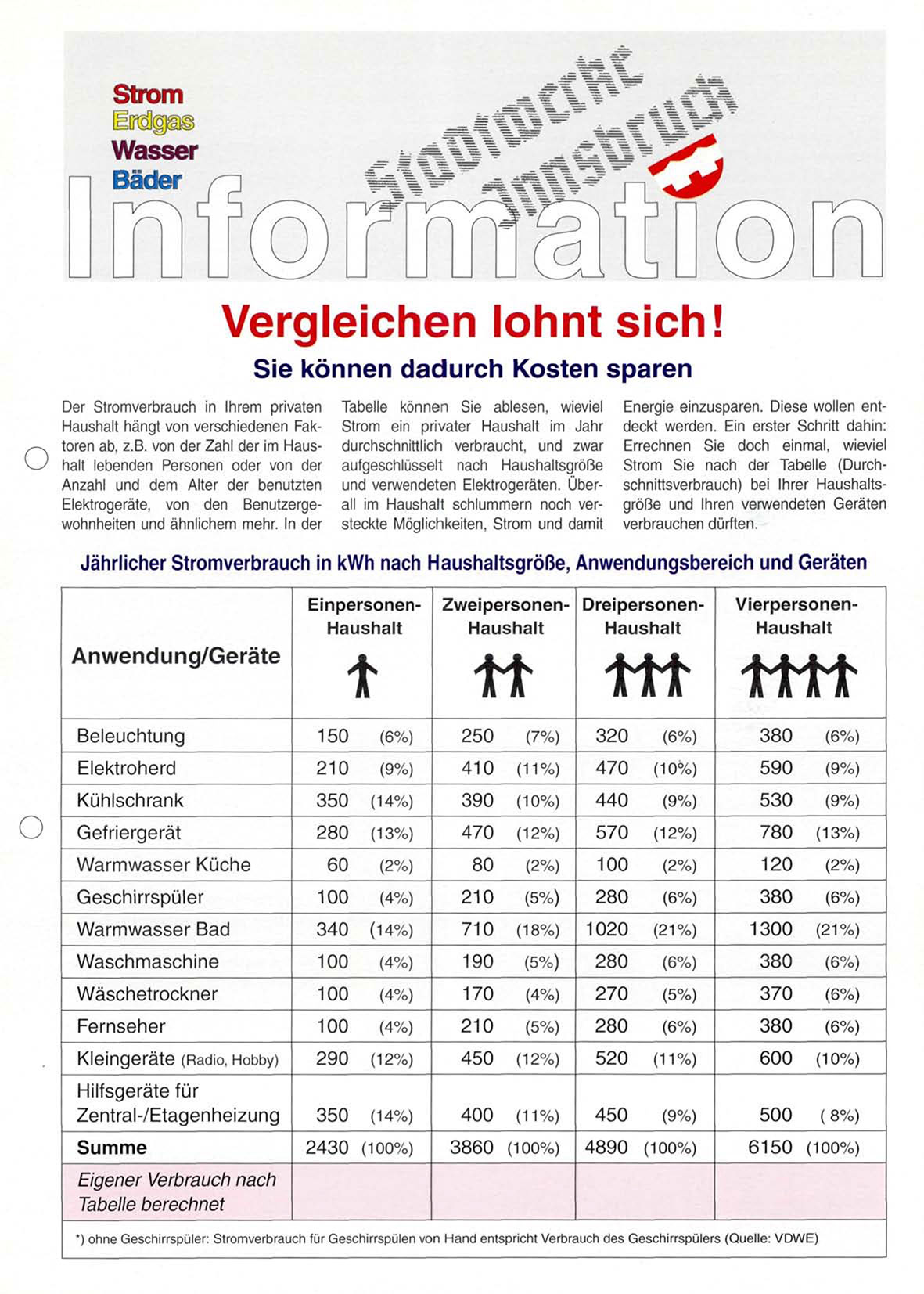 Strom Sie nach der Tabelle (Durchschnittsverbrauch) bei Ihrer Haushaltsgroße und Ihren verwendeten Geräten