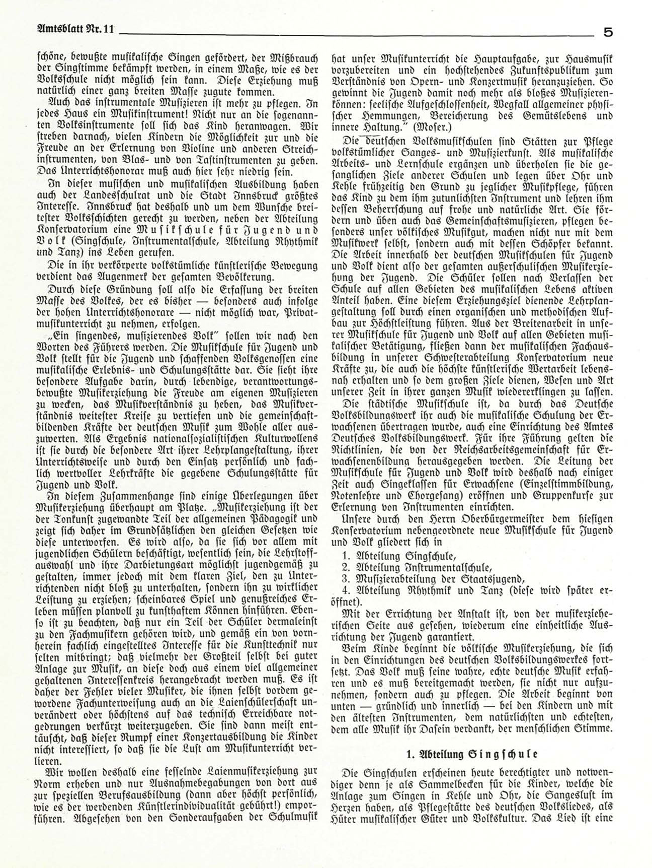 M i t der Errichtung der Anstalt ist, von der musikerzieherischen Seite aus gesehen, wiederum eine einheitliche Ausricktung der Jugend garantiert.