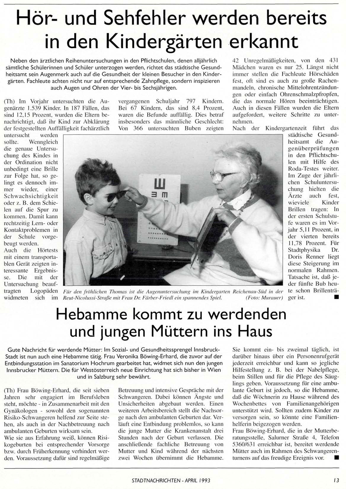 Neben den ärztlichen Reihenuntersuchungen in den Pflichtschulen, denen alljährlich