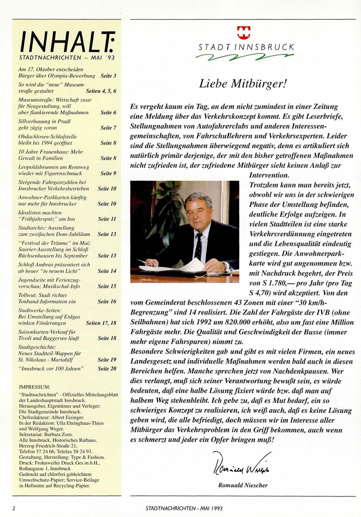 eine Meldung über das Verkehrskonzept kommt. Es gibt Leserbriefe,
