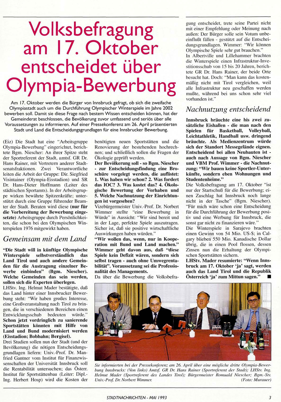 nur der Startschuß für die Bewerbung; einen Zuschlag hat Innsbruck noch lange