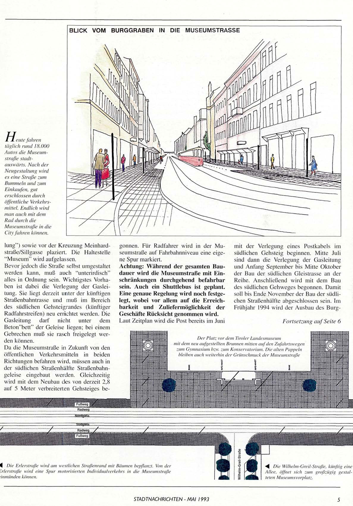 der südlichen Straßenhälfte Straßenbahngeleise eingebaut werden. Gleichzeitig