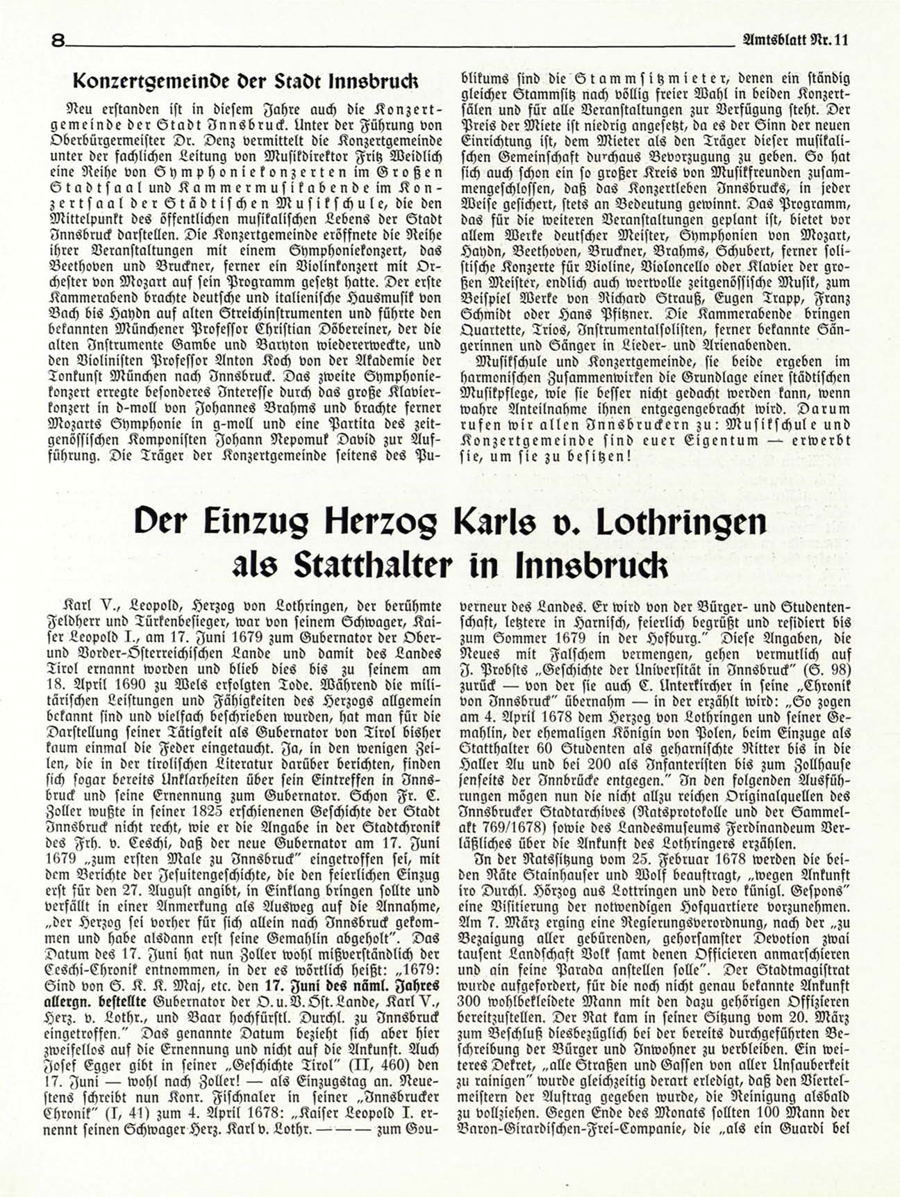 Zoller wußte in seiner 1825 erschienenen Geschichte der Stadt Innsbrucker Stadtarchives (Ratsprotokolle und der SammelInnsbruck nicht recht, wie er die Angabe in der Stadtchronik akt 769/1678) sowie des Landesmuseums Ferdinandeum Verdes Frh. v. Ceschi, daß der neue Gubernator am 17. Juni läßliches über die Ankunft des Lothringers erzählen.