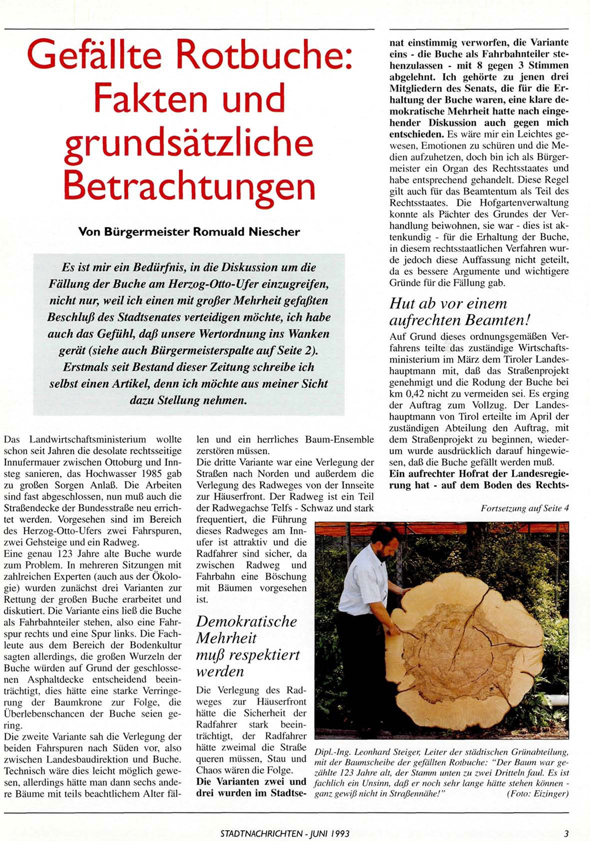 dem Straßenprojekt zu beginnen, wiederum wurde ausdrücklich darauf hingewiesen, daß die Buche gefällt werden muß.