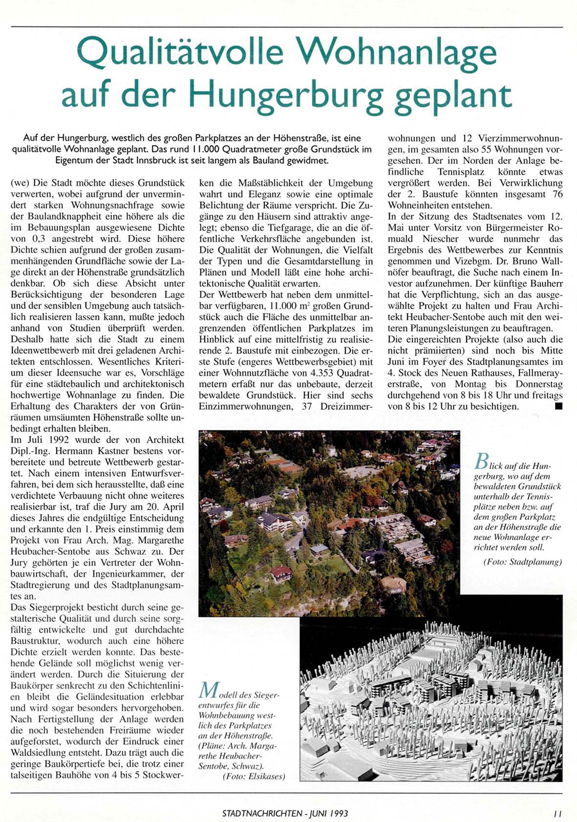 Dipl.-Ing. Hermann Kastner bestens vorbereitete und betreute Wettbewerb gestartet. Nach einem intensiven Entwurfsverfahren, bei dem sich herausstellte, daß eine