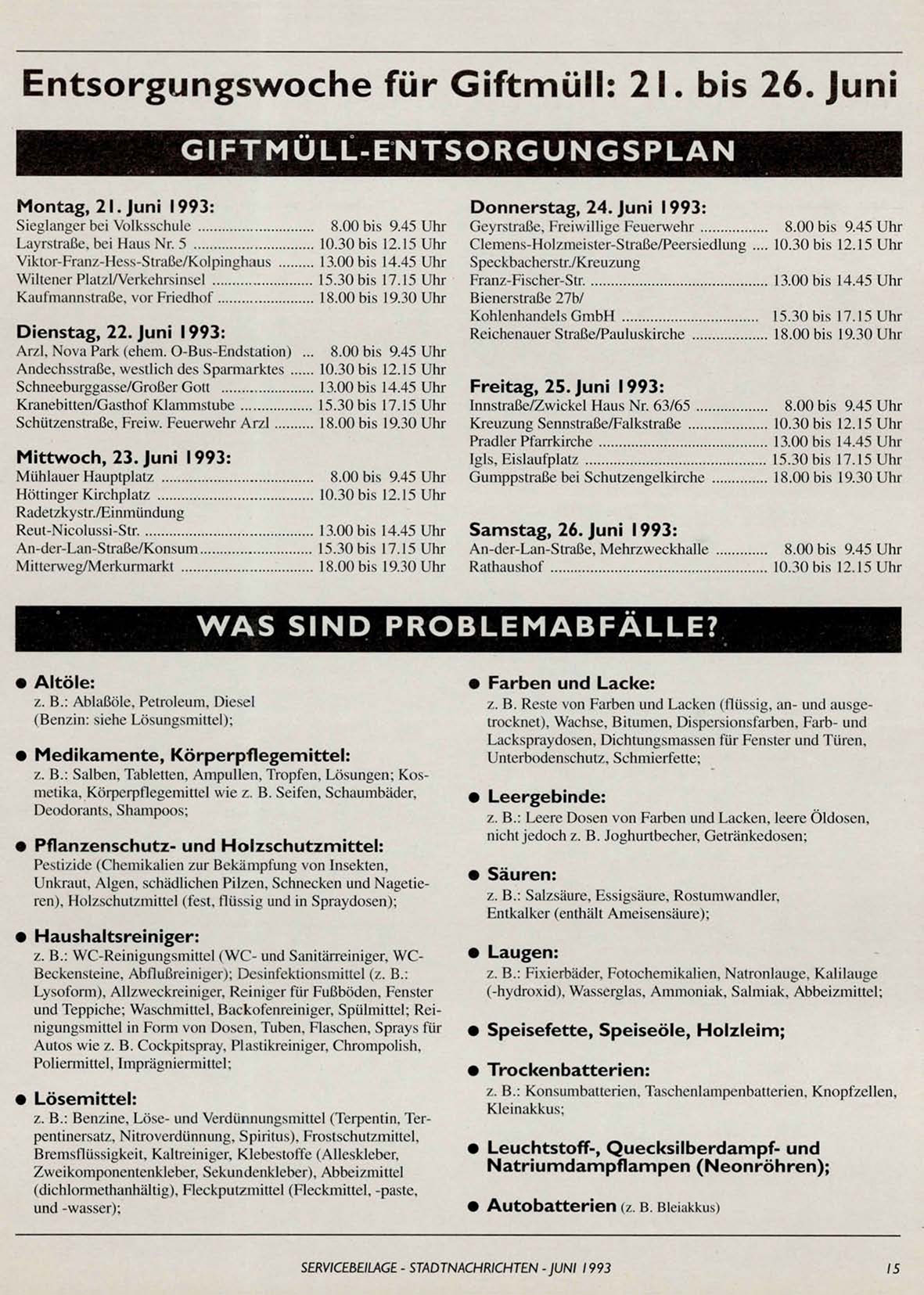 Entsorgungswoche für G i f t m ü l l : 2 1 . bis 26. Juni