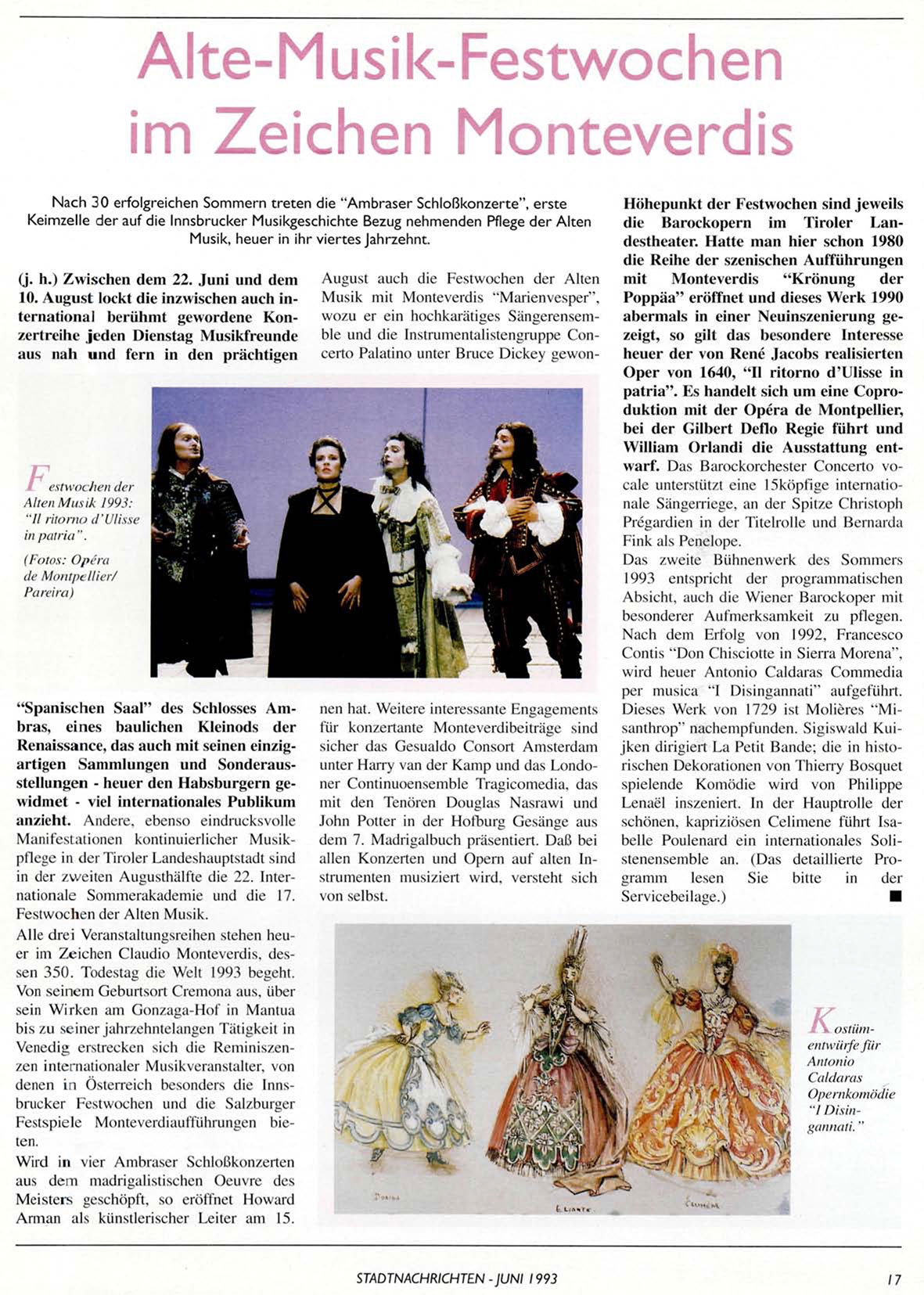 Alle drei Veranstaltungsreihen stehen heuer im Zeichen Claudio Monteverdis, dessen 350. Todestag die Welt 1993 begeht.
