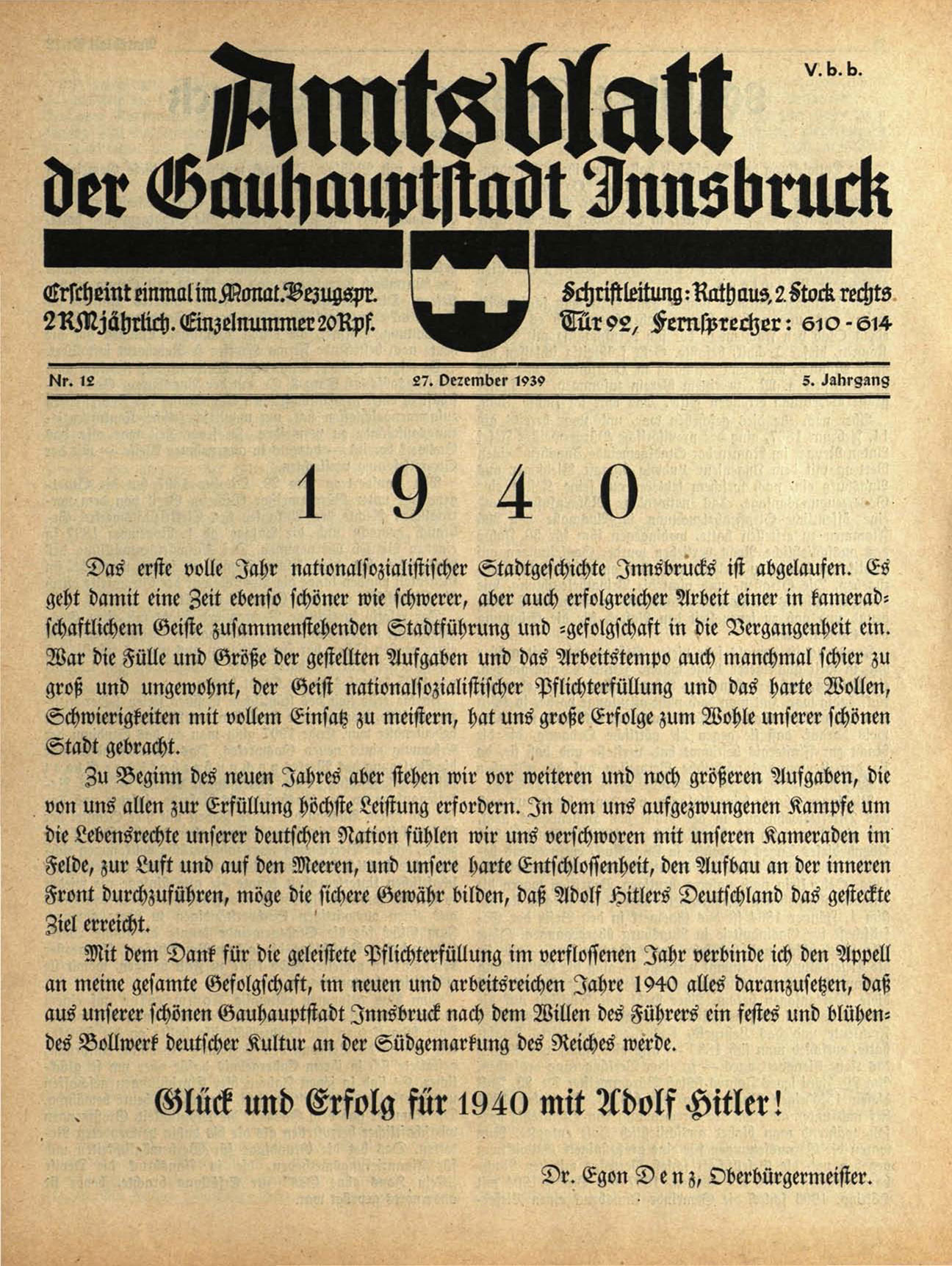 Das erste volle Jahr nationalsozialistischer Stadtgeschichte Innsbrucks ist abgelaufen. Es
