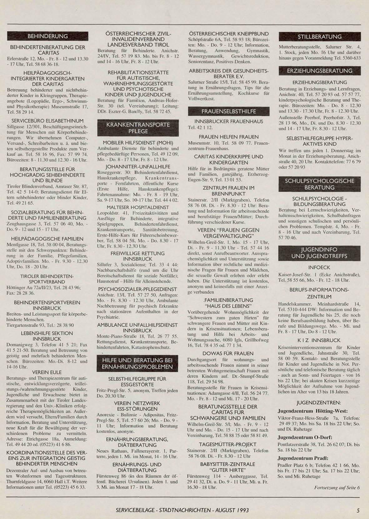 SERViCEBEILAGE - STADTNACHRICHTEN - AUGUST 1993