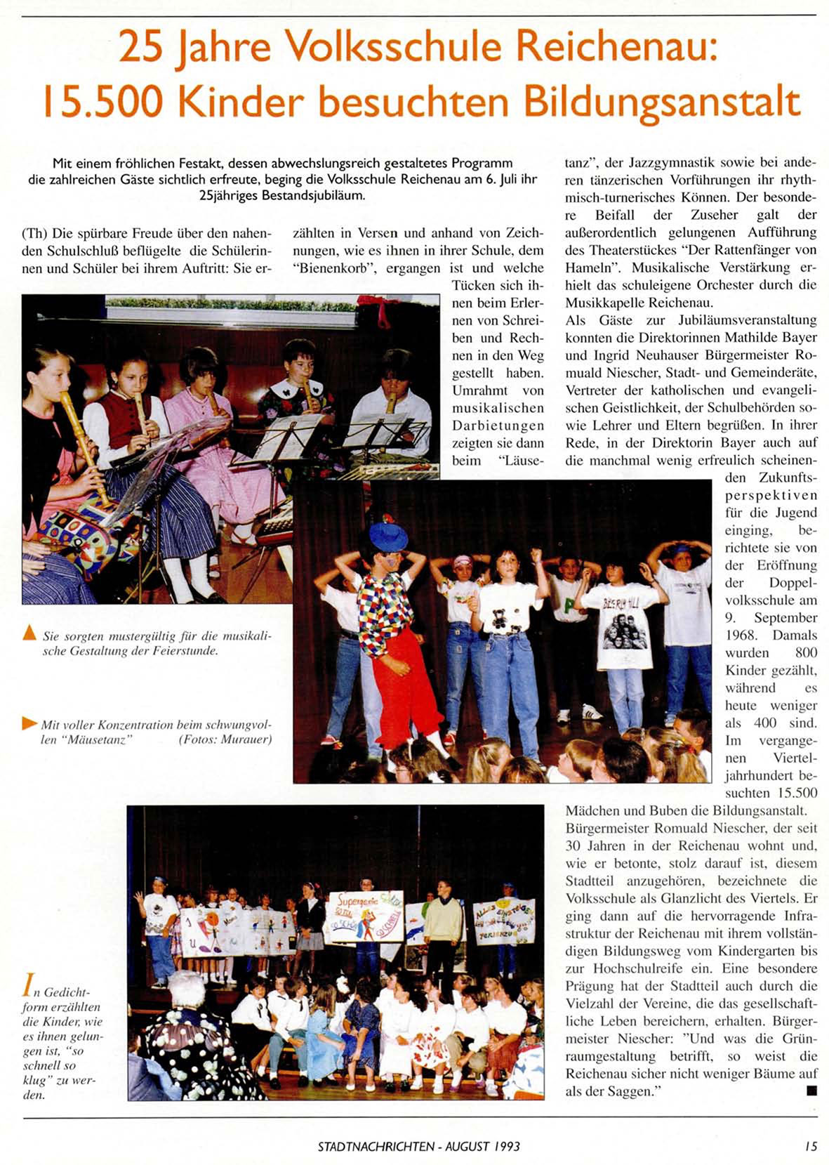 die zahlreichen Gäste sichtlich erfreute, beging die Volksschule Reichenau am 6. Juli ihr