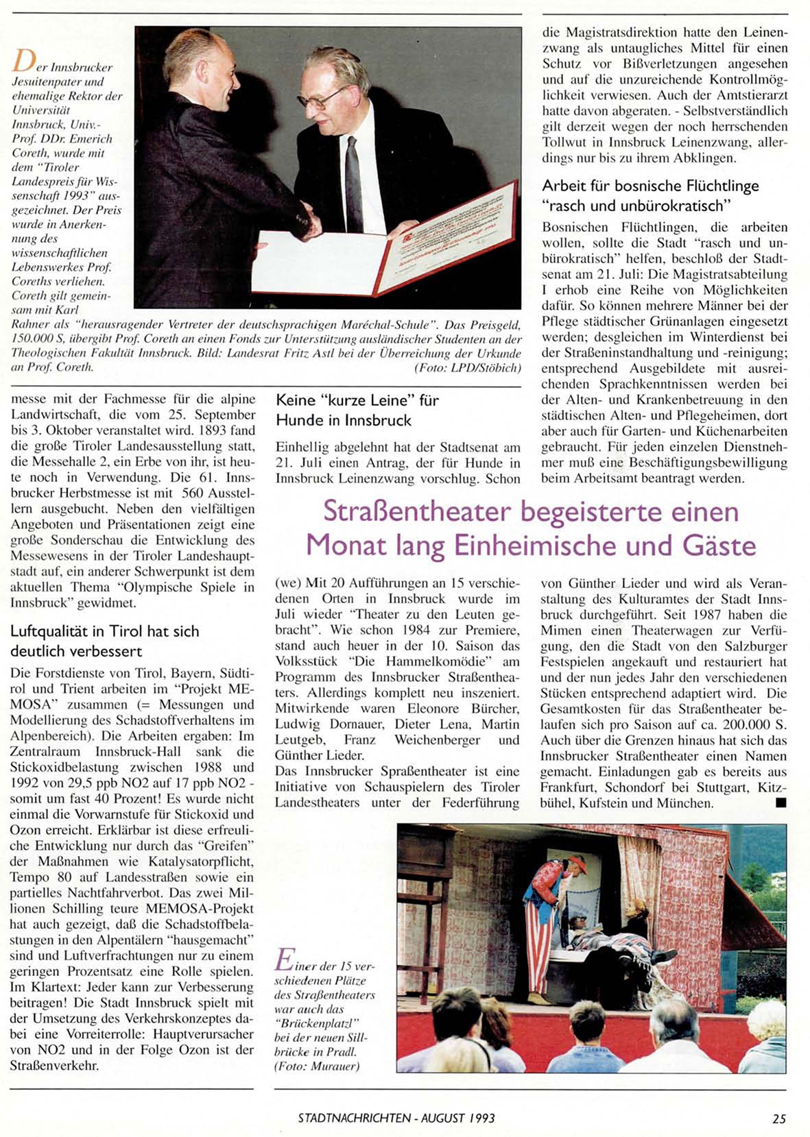 Landespreis für Wissenschaft 1993" ausgezeichnet. Der Preis