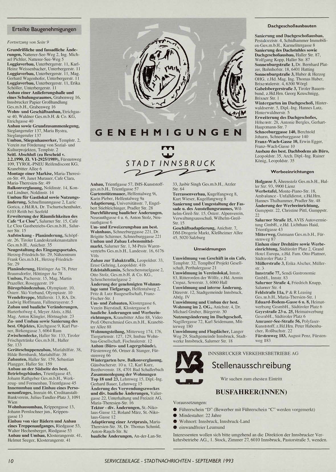 Interessenten wollen sich bitte umgehend an die Direktion der Innsbrucker Verkehrsbetriebe AG.. 1. Stock, Zimmer 27, 6010 Innsbruck, Pastorstraße 5, wenden.
