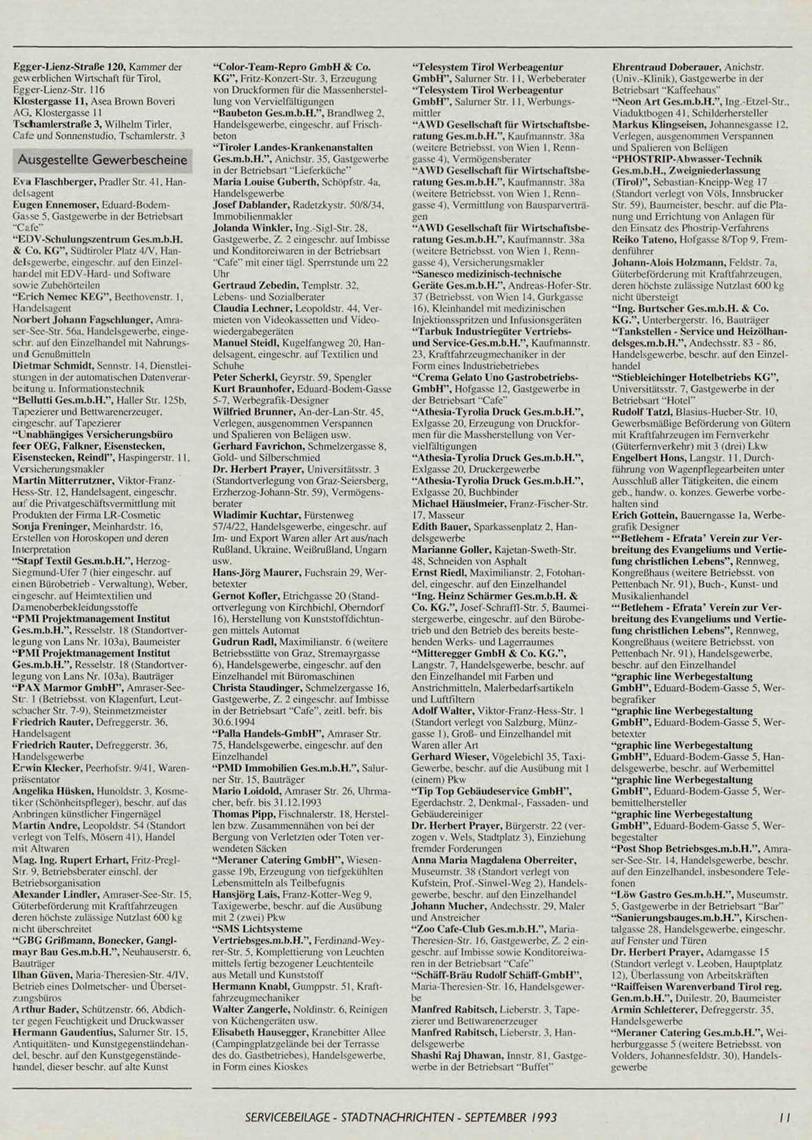 SERVICEBEILAGE - STADTNACH RI CHT EN - SEPTEMBER 1993