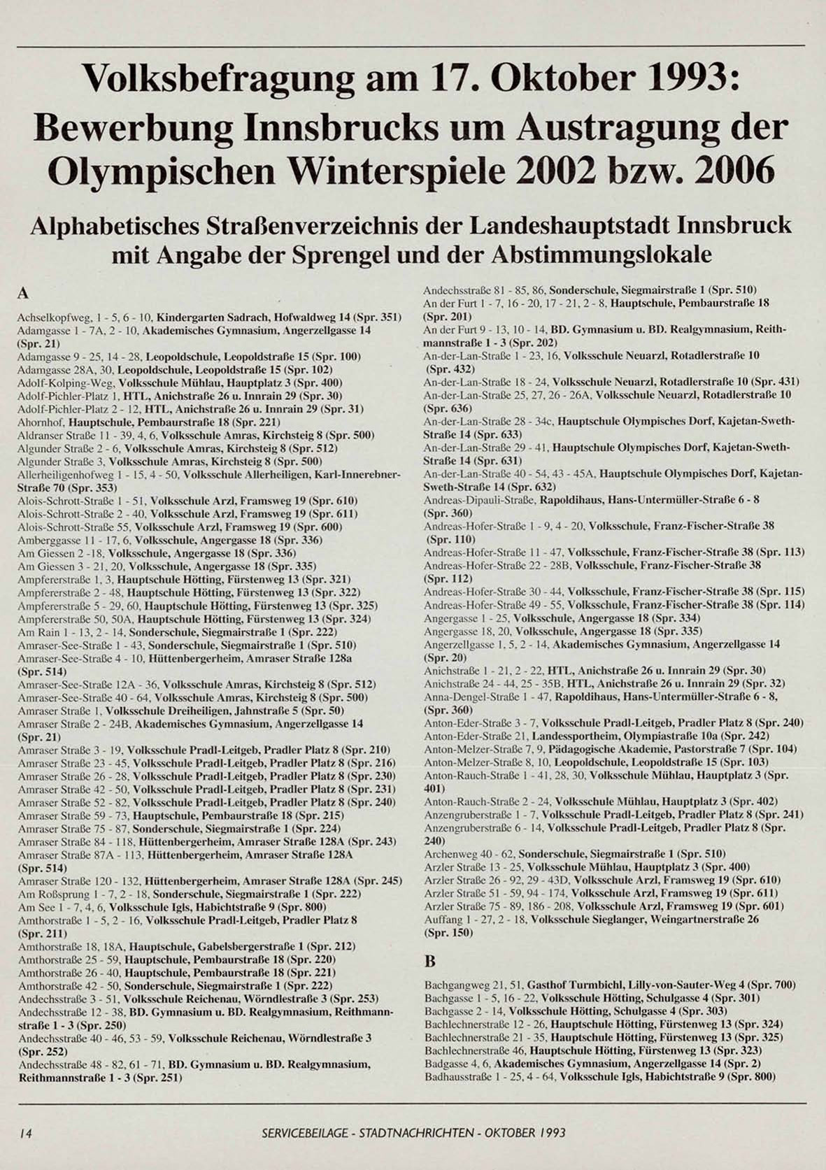 Alphabetisches Straßenverzeichnis der Landeshauptstadt Innsbruck