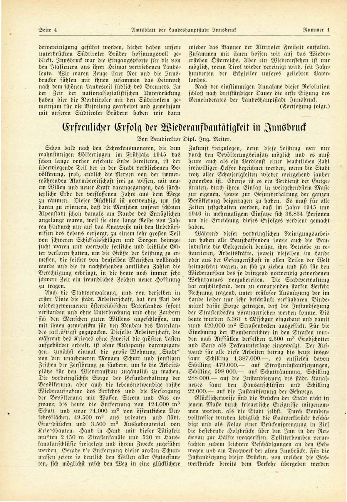 Erfreulicher Erfolg der Wiederaufdautätigkeit in Innsbruck