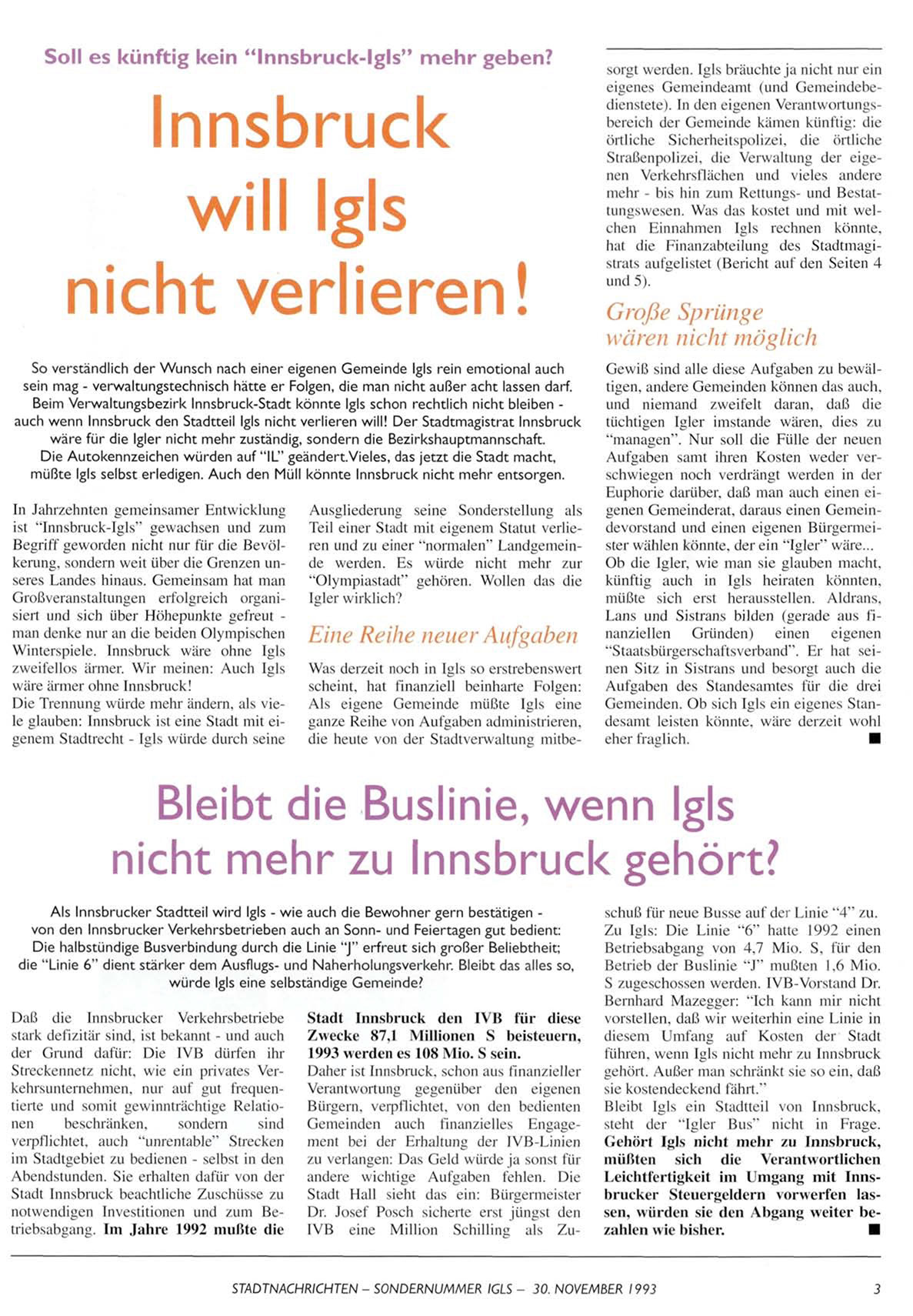 STADTNACHRICHTEN - SONDERNUMMER IGLS - 30. NOVEMBER 1993