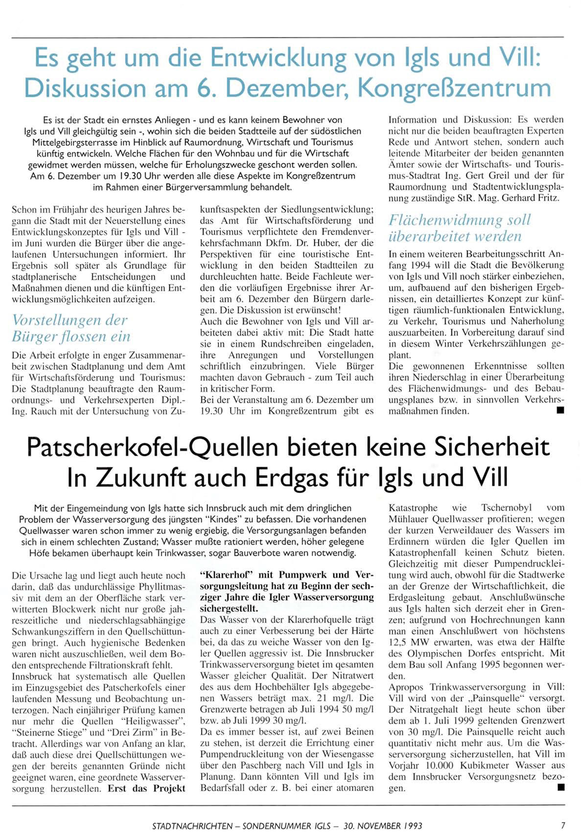 STADTNACHRICHTEN - SONDERNUMMER IGLS - 30. NOVEMBER 1993