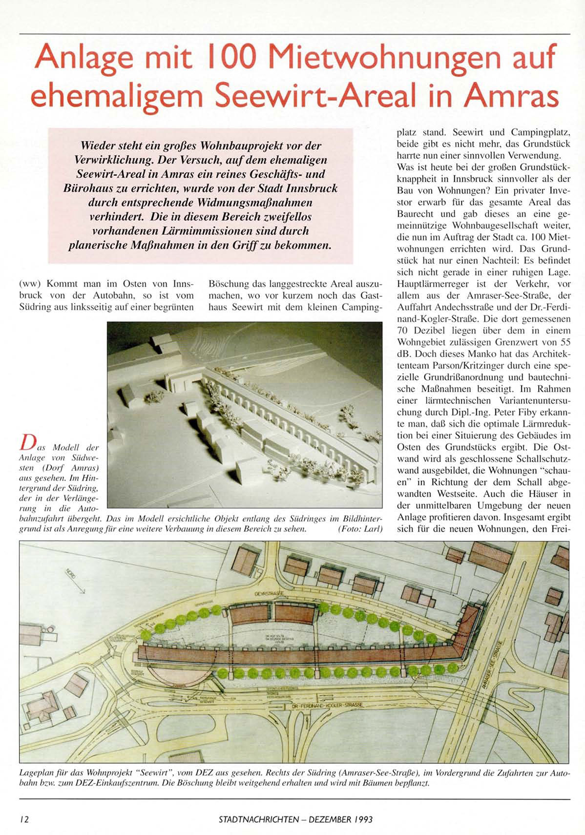 einer lärmtechnischen Variantenuntersuchung durch Dipl.-Ing. Peter Fiby erkannte man, daß sich die optimale Lärmreduktion bei einer Situierung des Gebäudes im