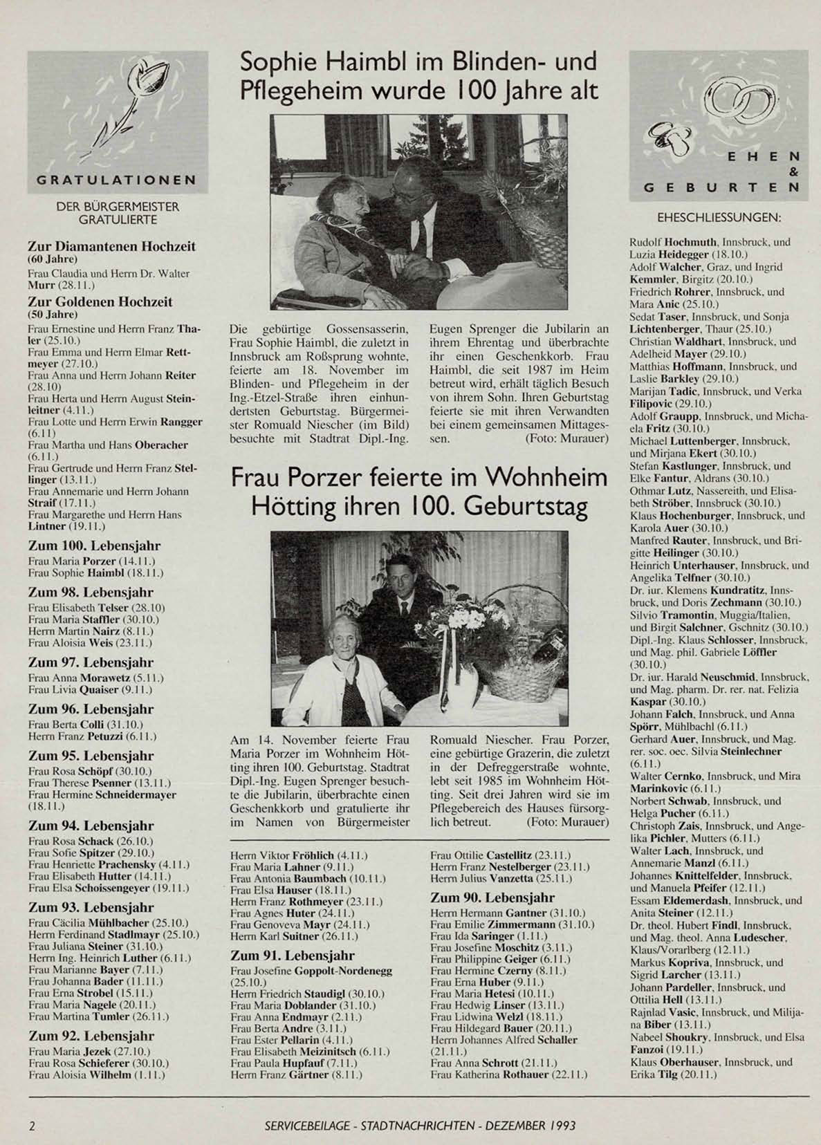 SERVICEBEILAGE - STADTNACHRICHTEN - DEZEMBER 1993