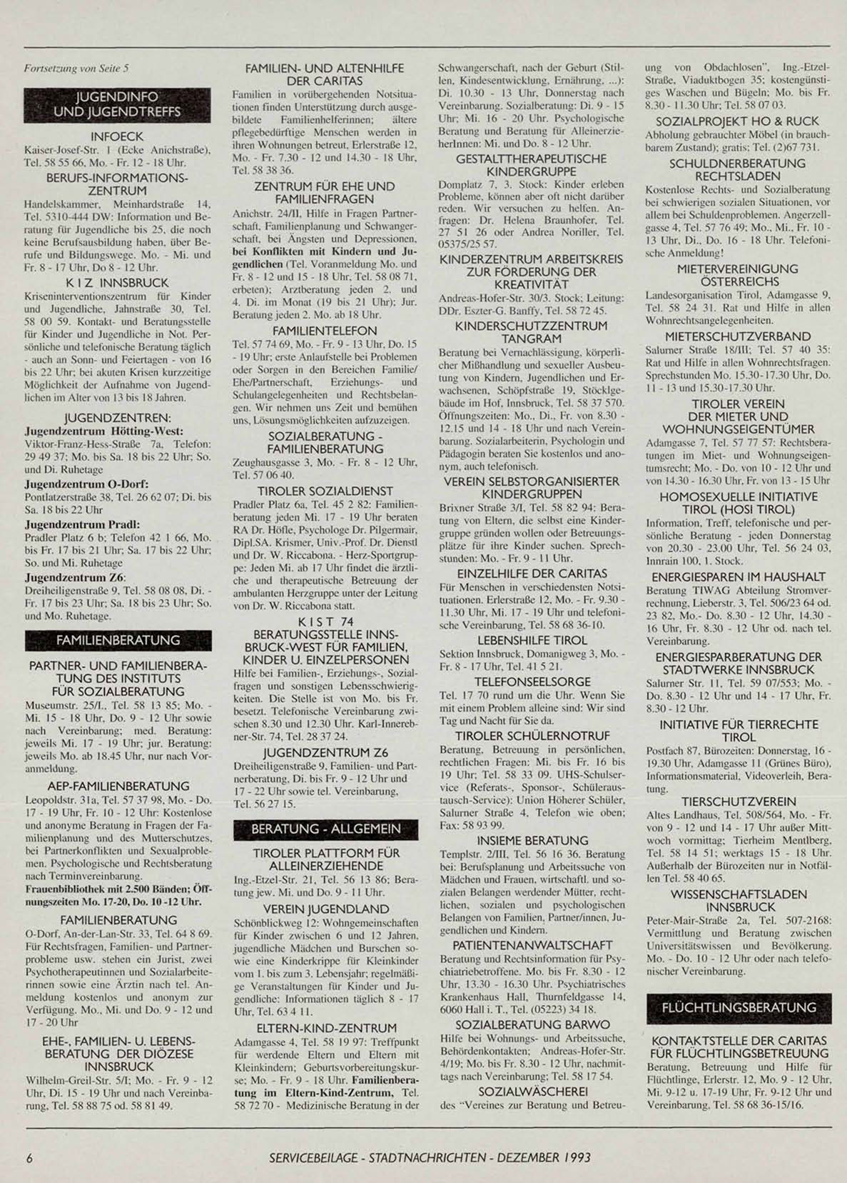 SERVICEBEILAGE - STADTNACH RI CHTEN - DEZEMBER 1993
