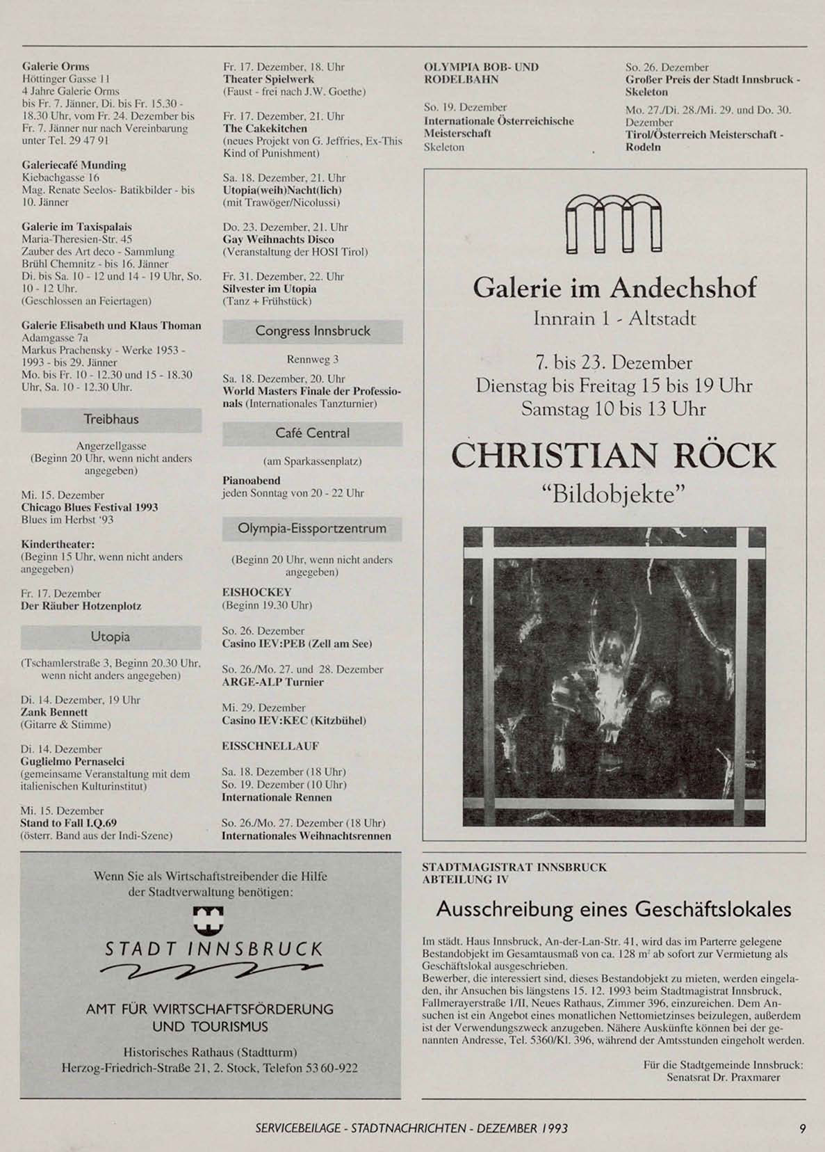 Bewerber, die interessiert sind, dieses Bestandobjekt zu mieten, werden eingeladen, ihr Ansuchen bis längstens 15. 12. 1993 beim Stadtmagistrat Innsbruck,