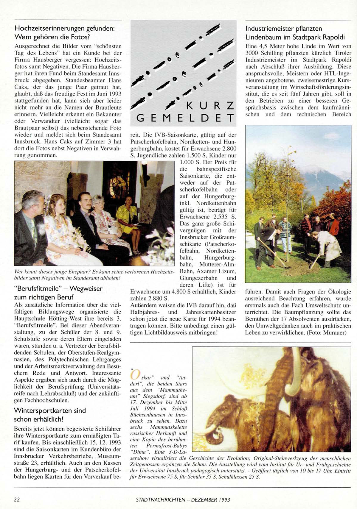 schon jetzt die neue Karte für 1994 beantragen können. Bitte unbedingt einen gültigen Lichtbildausweis mitbringen!