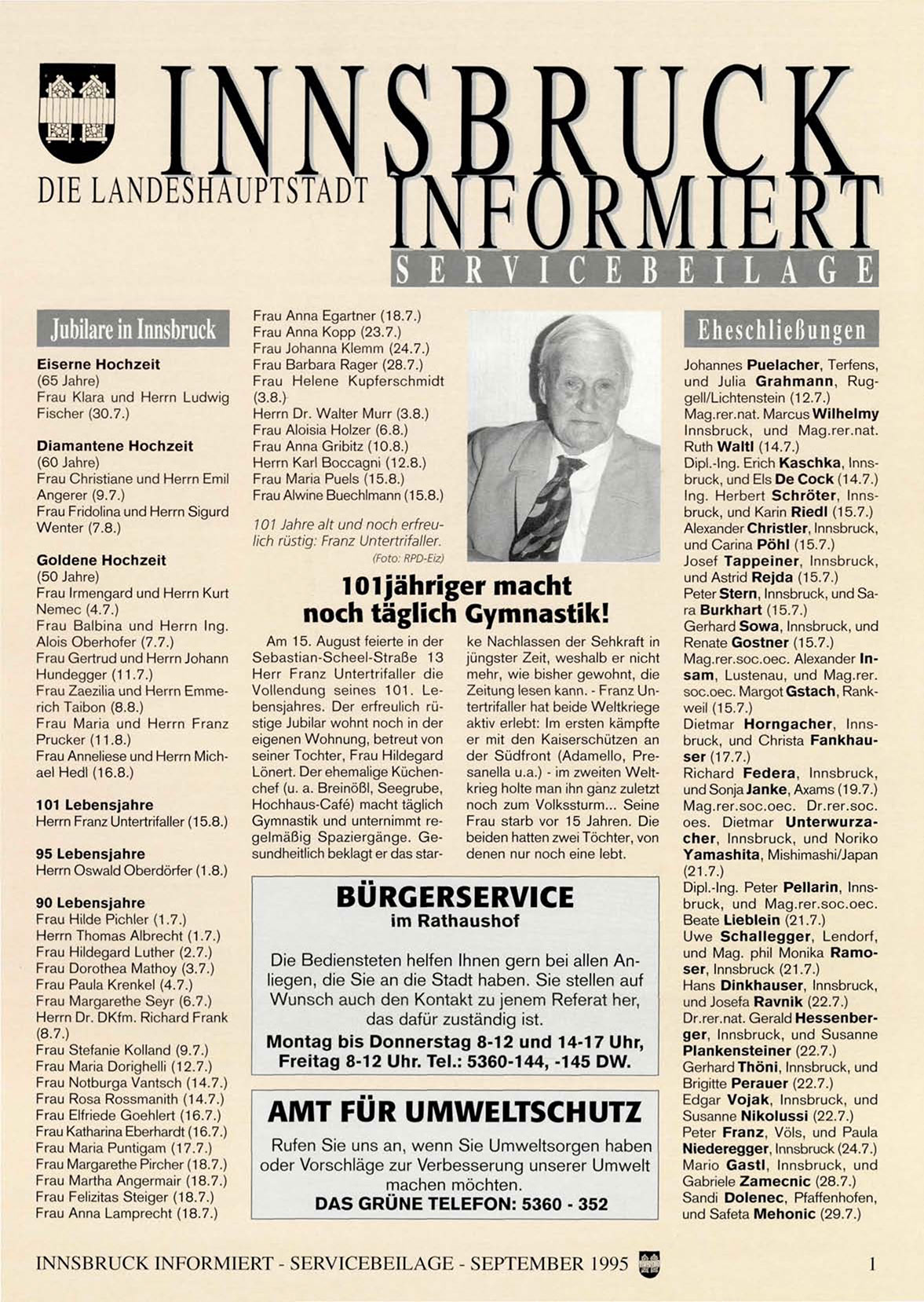 INNSBRUCK INFORMIERT- SERVICEBEILAGE - SEPTEMBER 1995