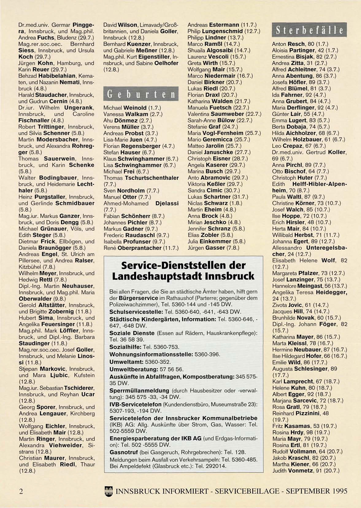 INNSBRUCK INFORMIERT - SERVICEBEILAGE - SEPTEMBER 1995