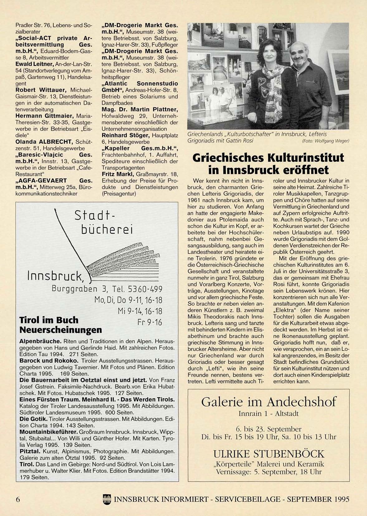 INNSBRUCK INFORMIERT - SERVICEBEILAGE - SEPTEMBER 1995