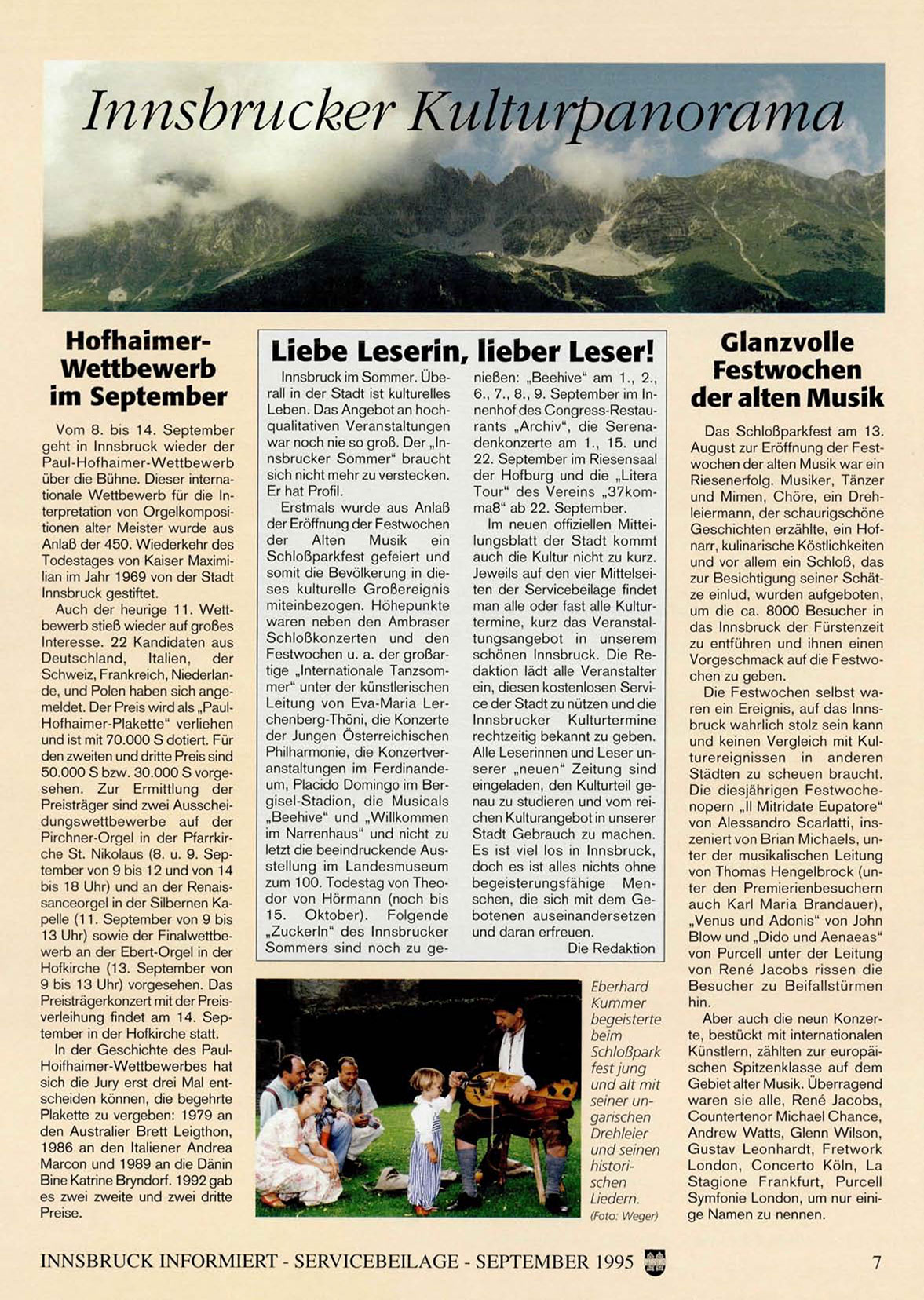 INNSBRUCK INFORMIERT - SERVICEBEILAGE - SEPTEMBER 1995